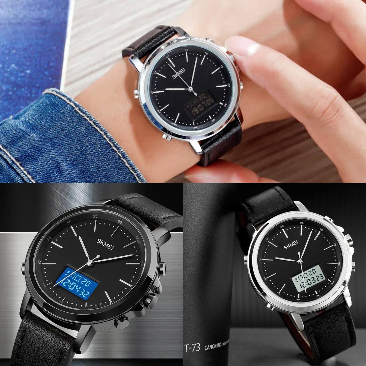 ساعت مچی دیجیتال آنالوگ Skmei ☔️ ضد آب، بدنه استیل 👌🏻دارای زنگ، کرنومتر و نور زمینه 👌🏻کیفیت عالی، موتور ژاپن رنگبندی: مشکی، نقره ای، رزگلد، طلایی