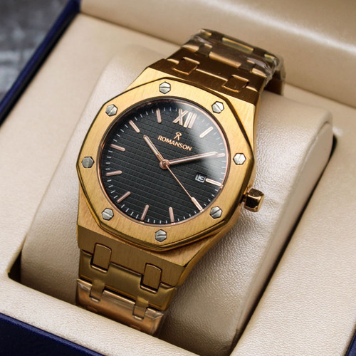 ساعت مچی مردانه ROMANSON ✅موتور ژاپن، تقویم دار ✅بند استیل، قفل فشاری ✅ضدآب در حد دست شستن، رنگ ثابت ✅جعبه و باطری رایگان