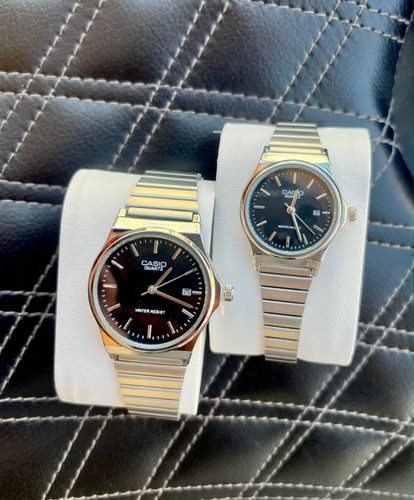 ست ساعت زنانه و مردانه Casio set CLASSIC دارای روزشمار بند استیل رنگ ثابت سایز کلاسیک ضدآب در حد دست شستن