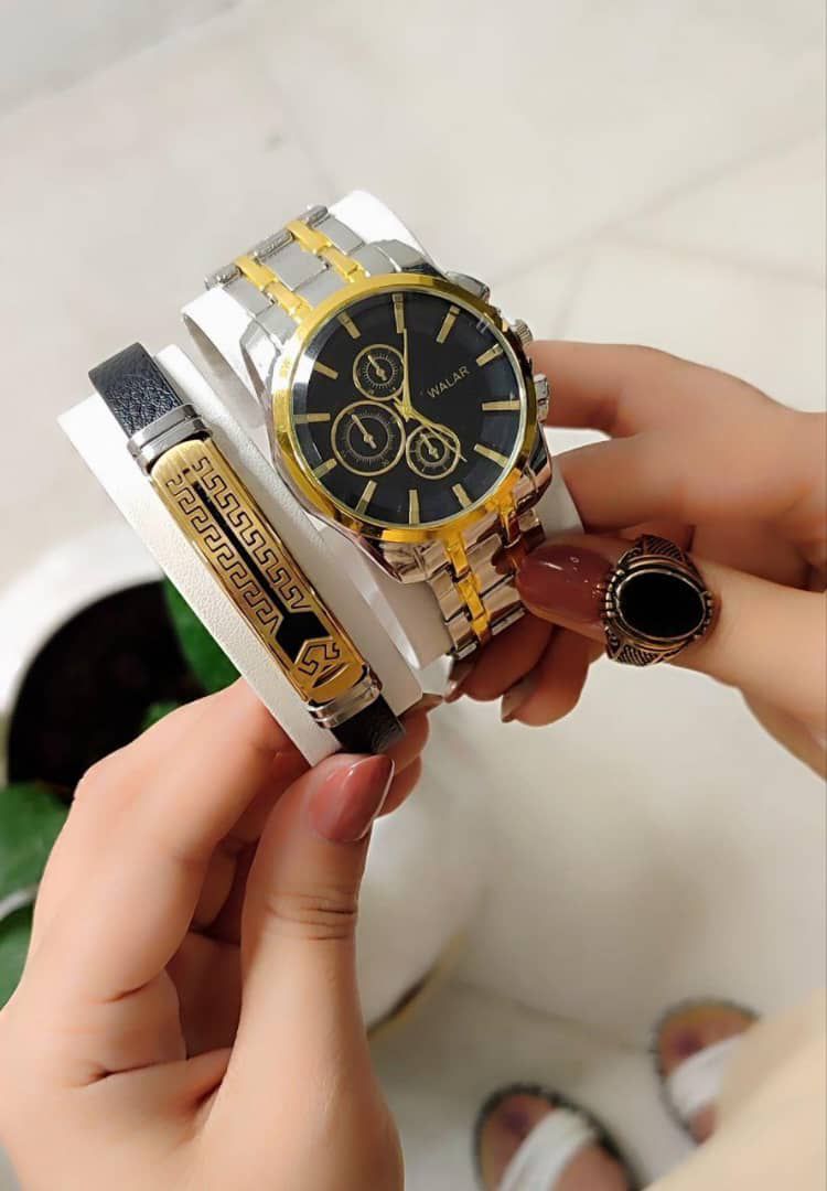 ست مردانه ساعت ودستبند وانگشتر برند معروف والار WALAR