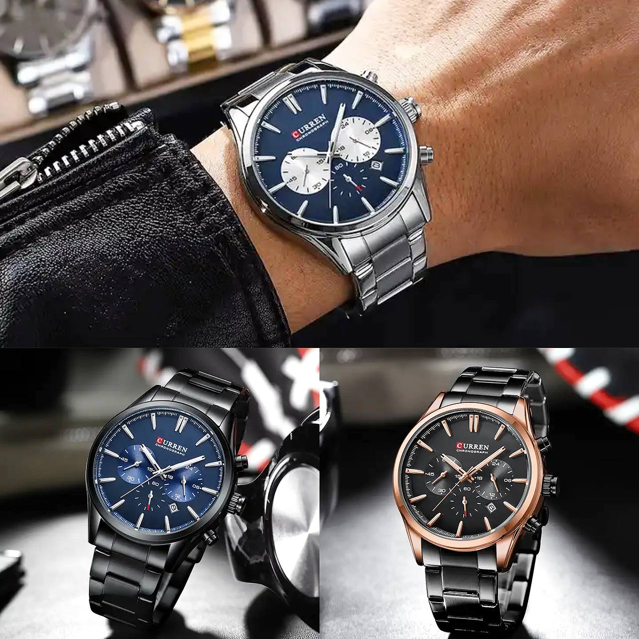 ساعت مچی مردانه کرنوگراف Curren ☔️ ضد آب، رنگ ثابت 👌🏻تمام استیل، شیشه ضدخش 👌🏻کیفیت عالی، همه موتورها فعال ✅ کد محصول: 800