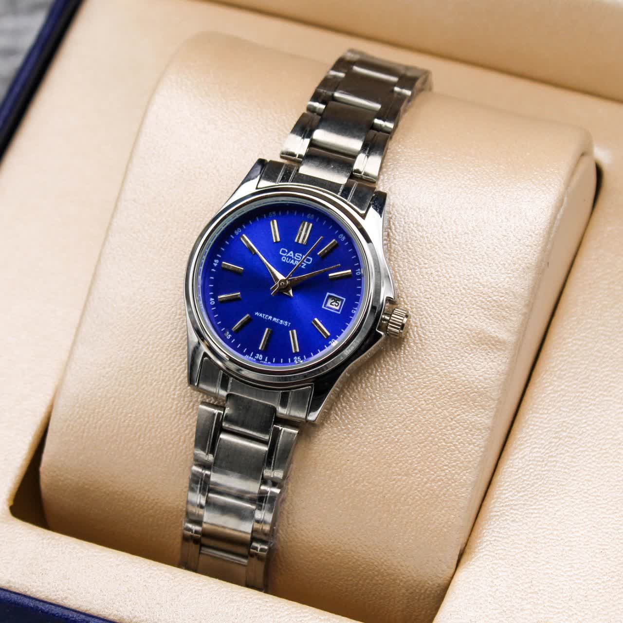 ساعت مچی زنانه CASIO ✅تقویم دار، رنگ بندی ✅بند استیل، قفل فشاری، رنگ ثابت ✅ضد آب در حد دست شستن ✅جعبه کادویی و باطری رایگان