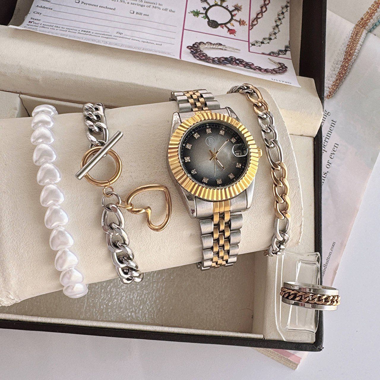 پک کامل ست لوکس زنانه(ساعت و دستبند و انگشتر)