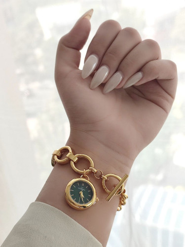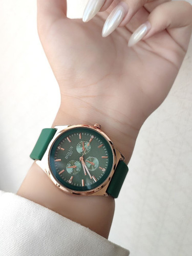 ساعت مچی زنانه صفحه سبز ➕ست هدیه: دستبند، گردنبند، انگشتر، گوشواره 💍 ✅ رنگبندی: طلایی، نقرهای، رزگلد کد محصول: 439