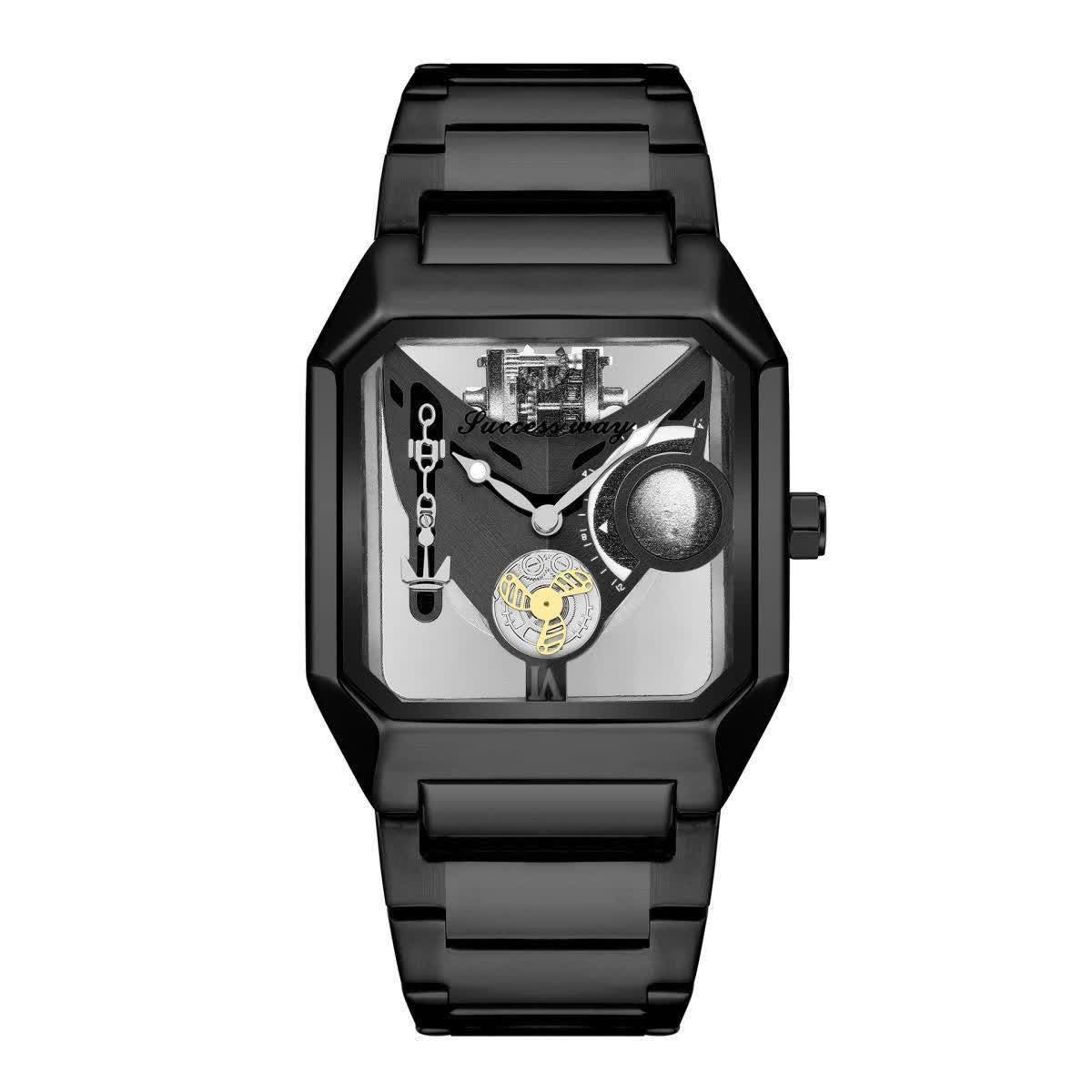 ساعت مچی مردانه ناسا یک مکعب خاص صفحه نمایشی قفل کلیپسی ثانیه شمار چرخشی متفاوت موتور نمایان ضدآب 3Atm بند استیل رنگ ثابت رنگبندی مشکی موتور کوارتز به همراه جعبه vip