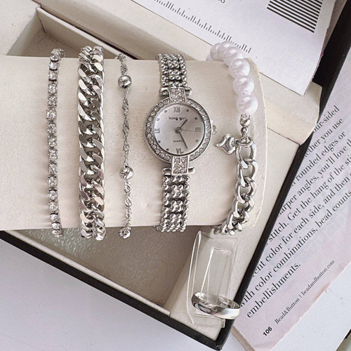 ست ساعت زنانه همراه دستبند وگردنبند وانگشتر شیک مناسب کادو همراه جعبه
