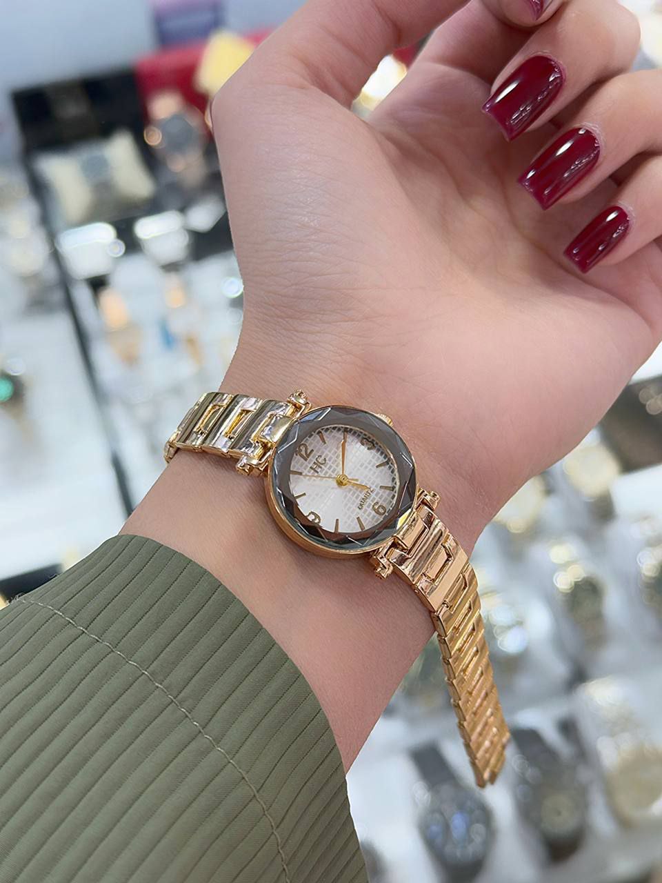 ساعت زنانه مارک الگانس ELEGANCE 120013001783 رنگ ثابت موتور ژاپن دور قاب نگین دو قفله مخفی قاب و بند استیل دارای اعداد یونانی کیفیت بسیار عالی