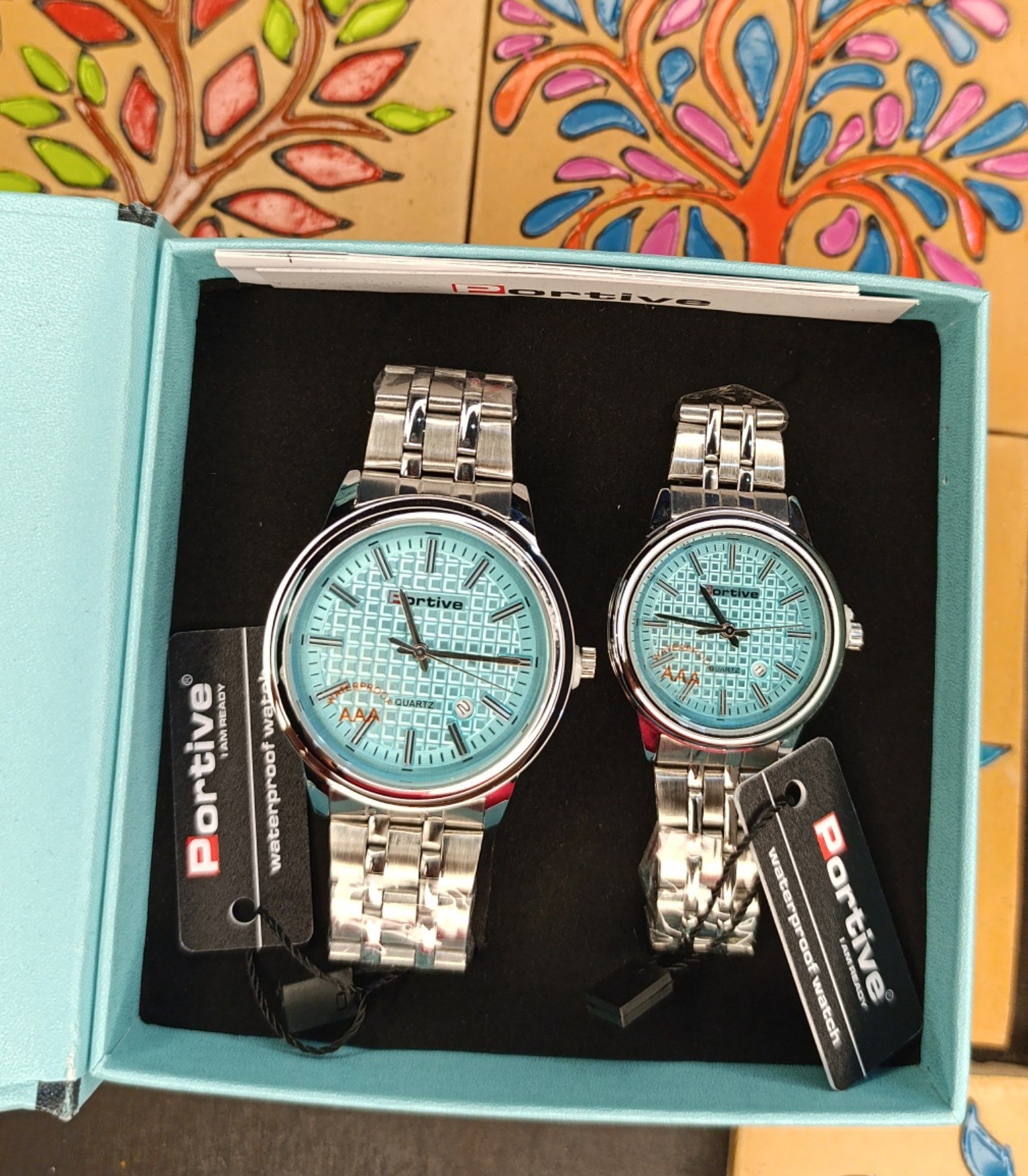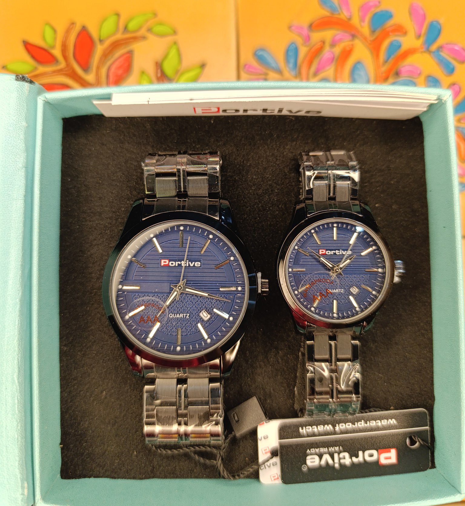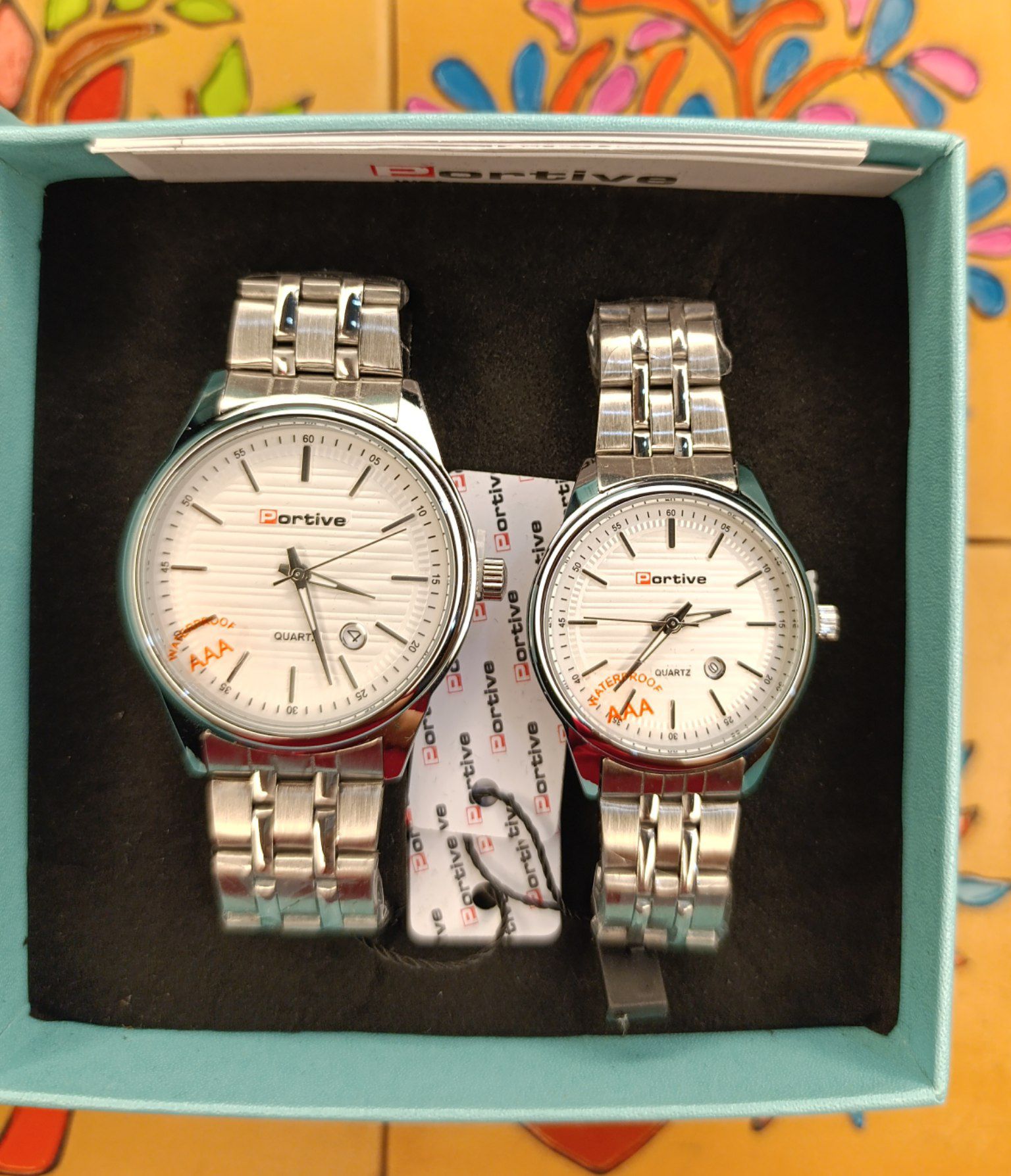 ست ساعت مچی زنانه و مردانه ✅برند پورتیو ✅بند استیل ✅در رنگ بندی صفحه ✅رنگ بند نقره‌ای و مشکی ✅جعبه مخصوص ✅کیفیت عالی ✅موتور کواتز