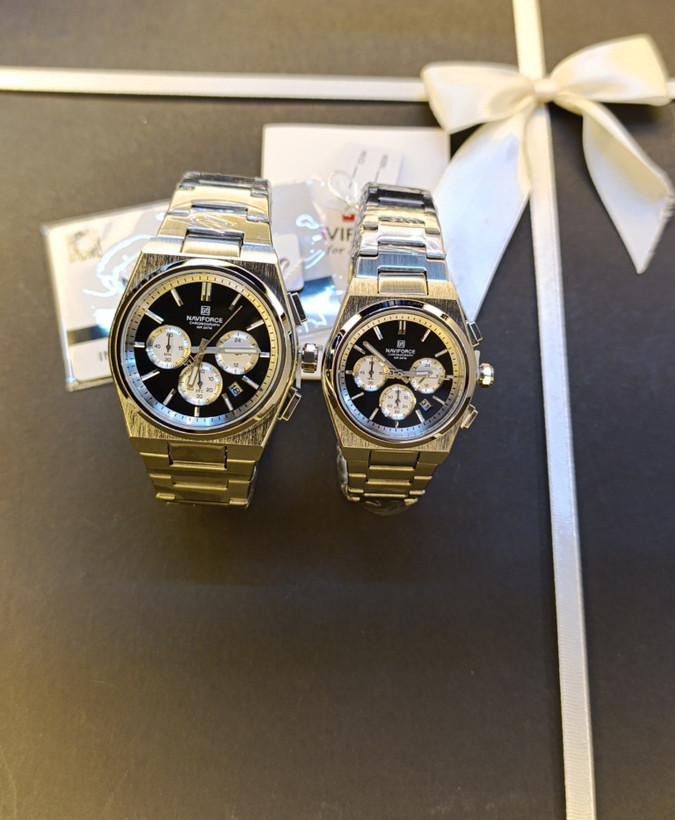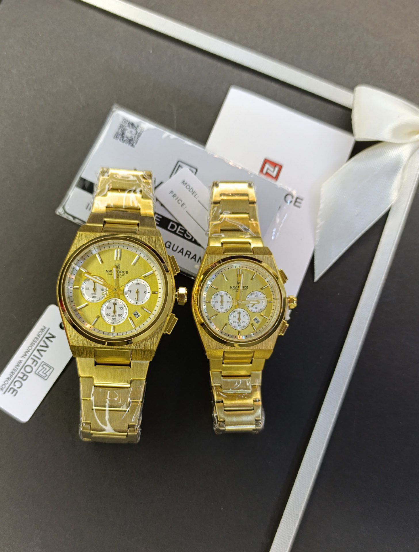 ست ساعت مچی زنانه و مردانه ✅برند NAVIFORCE:نیوی فورس ✅NAVIFORCE ✅۳ موتور فعال ✅بند آلیاژ روی ضد حساسیت ✅قفل استیل ✅عقربه ها شب تاب ✅شیشه کریستالی مقاوم در برابر ضربه و خش ✅جنس بدنه آلیاژ روی Zinc ضد حساسیت ✅تقویم ✅کرنومتر ✅قطر صفحه زنانه ۳۴ میلیمتر ✅قطر صفحه مردانه 43 میلیمتر
