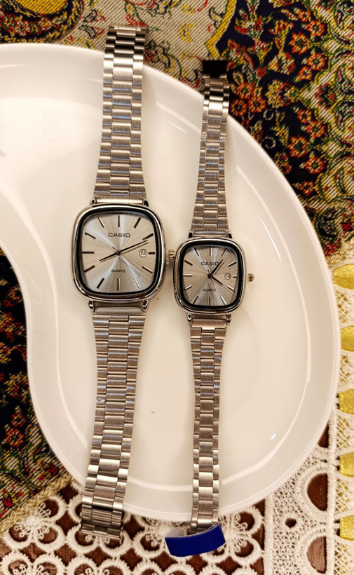 ست ساعت مچی مردانه و زنانه ✅از برند کاسیو اولد مانی ✅صفحه مربعی ✅بند و قفل استیل ✅موتور بسیار با کیفیت ✅دارای روز شمار ✅در تنوع رنگ بندی صفحه و بند ✅شیک و خاص پسند