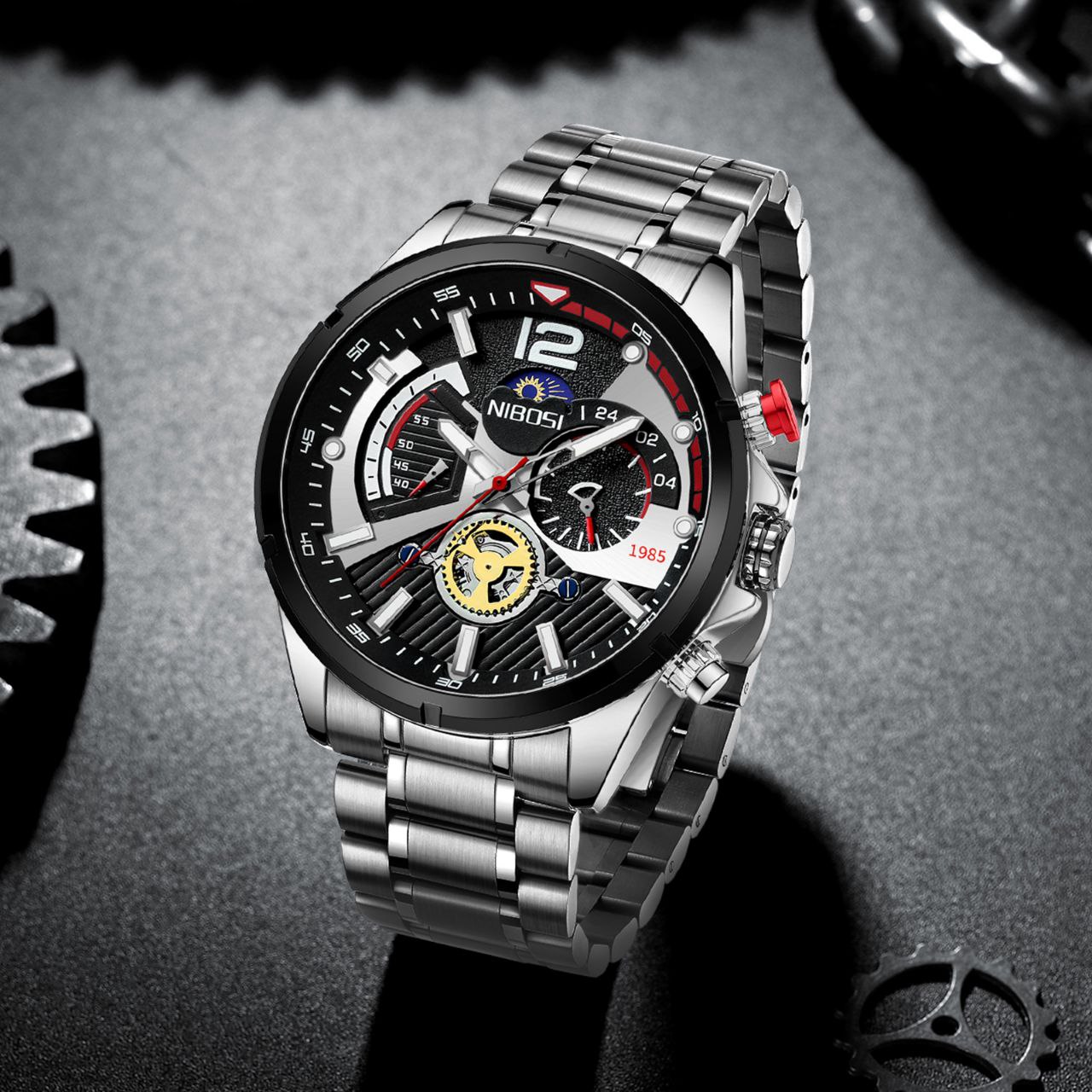 ساعت مچی مردانه ♻️ برند / nibosi ♻️ سه موتوره فعال ♻️ شیشه ضدخش ♻️ کیس استیل ♻️ بند استیل ♻️ قفل پروانه ای ♻️ قطر 43 میلی متر