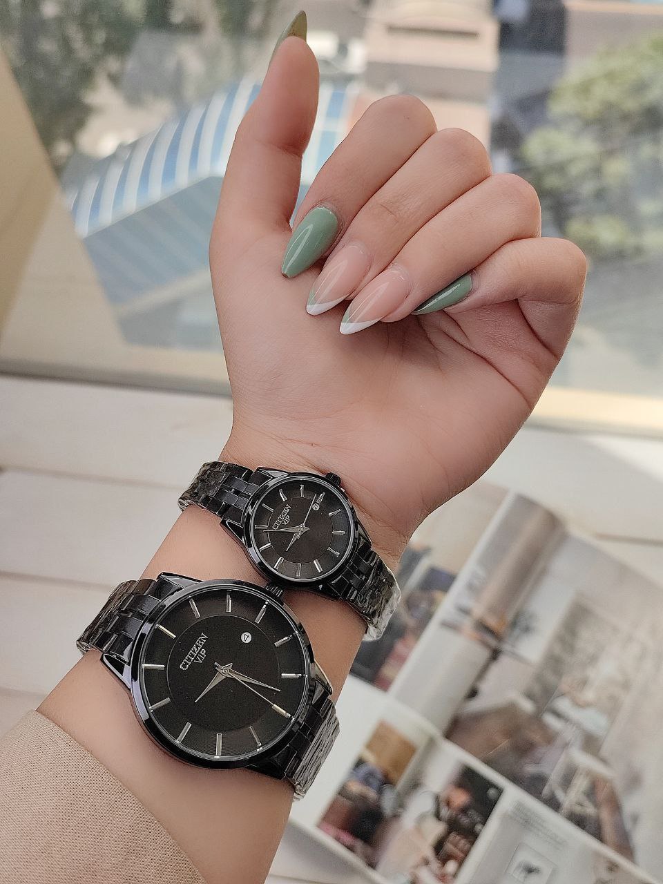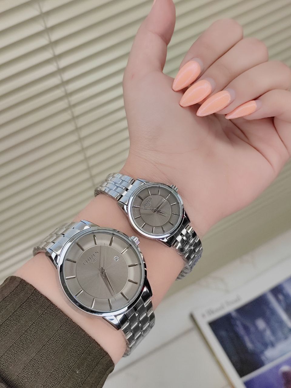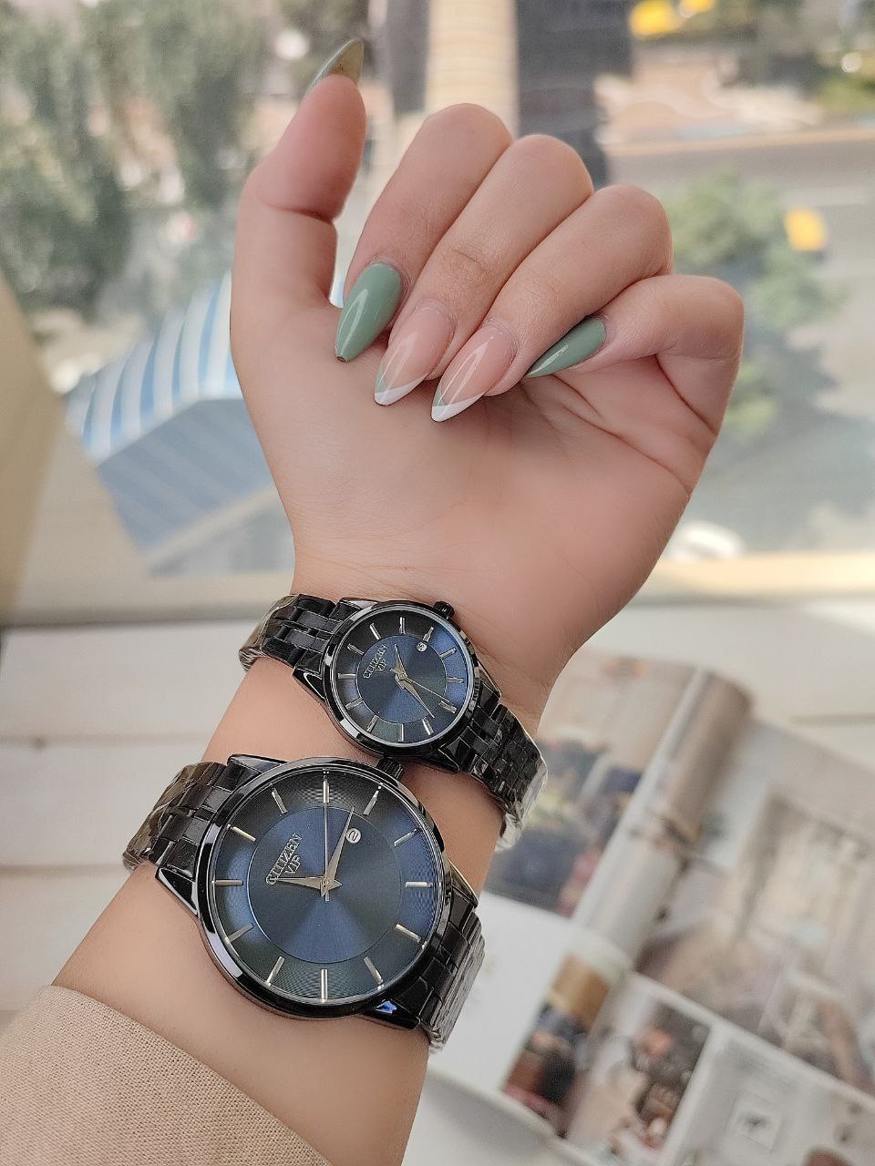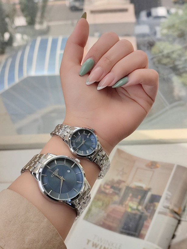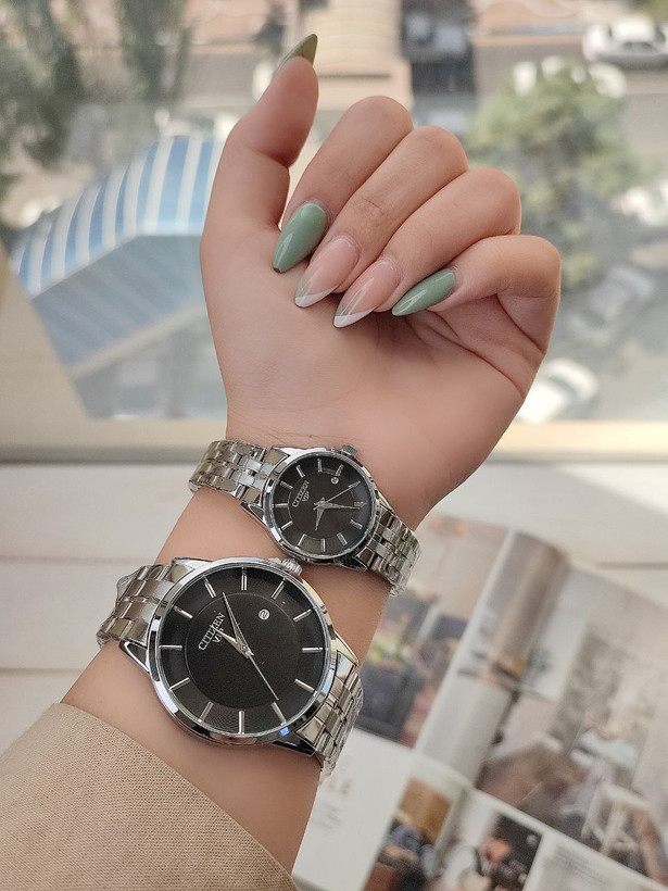 ست ساعت مارک سیتیزن CITIZEN 120013002255⭐ تقویم دار رنگ ثابت قفل ضامن دار موتور با کیفیت قاب و بند استیل کیفیت بسیار خوب همراه با جعبه شیک