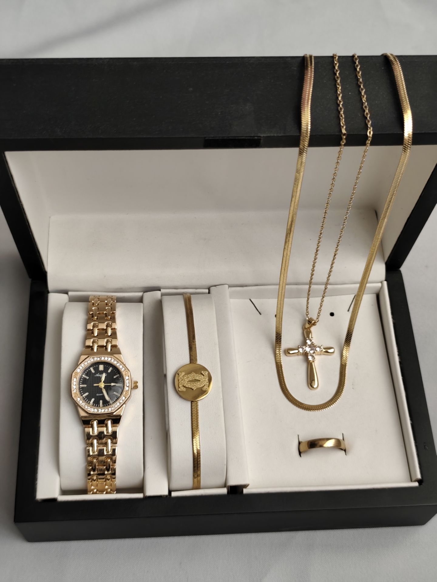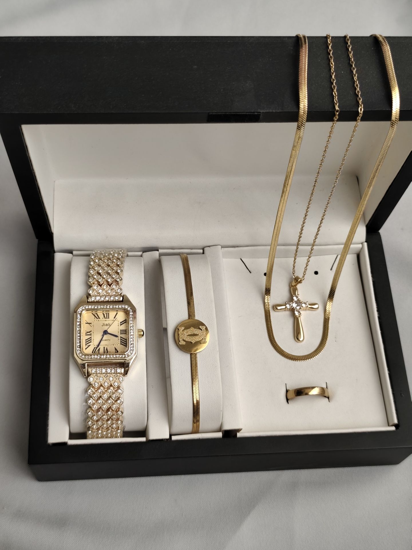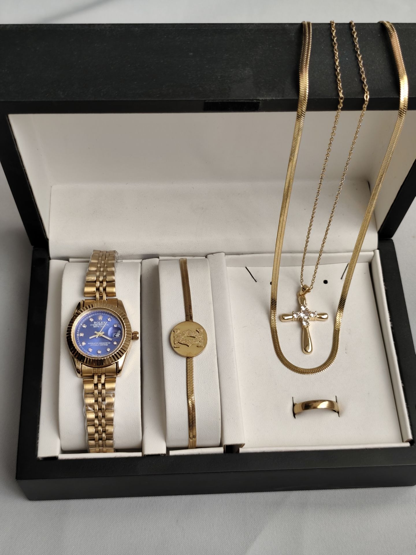ست ساعت و زیورآلات رنگ ثابت زنانه و دخترانه شیک و خاص