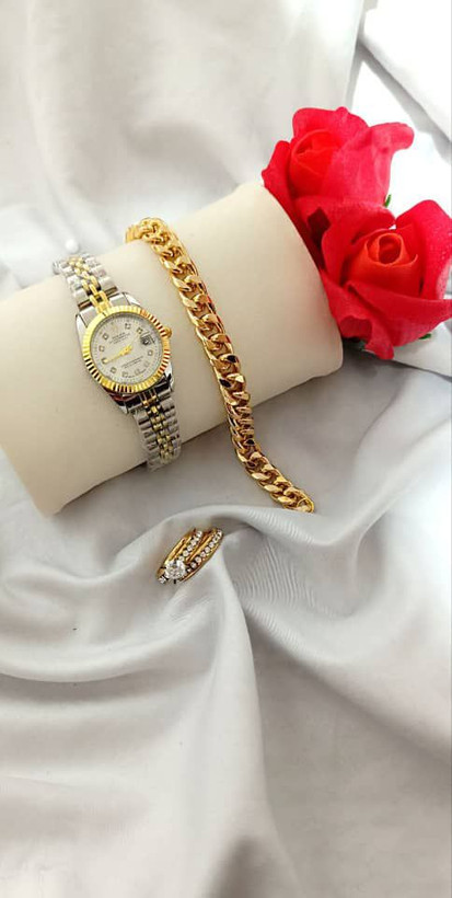 ست ساعت زنانه برند رولکس Rolexهمراه با دستبند رنگ ثابت پرفروش