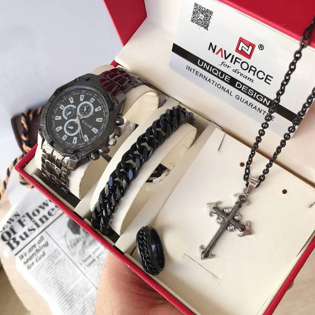ست ساعت لوکس مردانه طرح صلیب با جعبه شیک