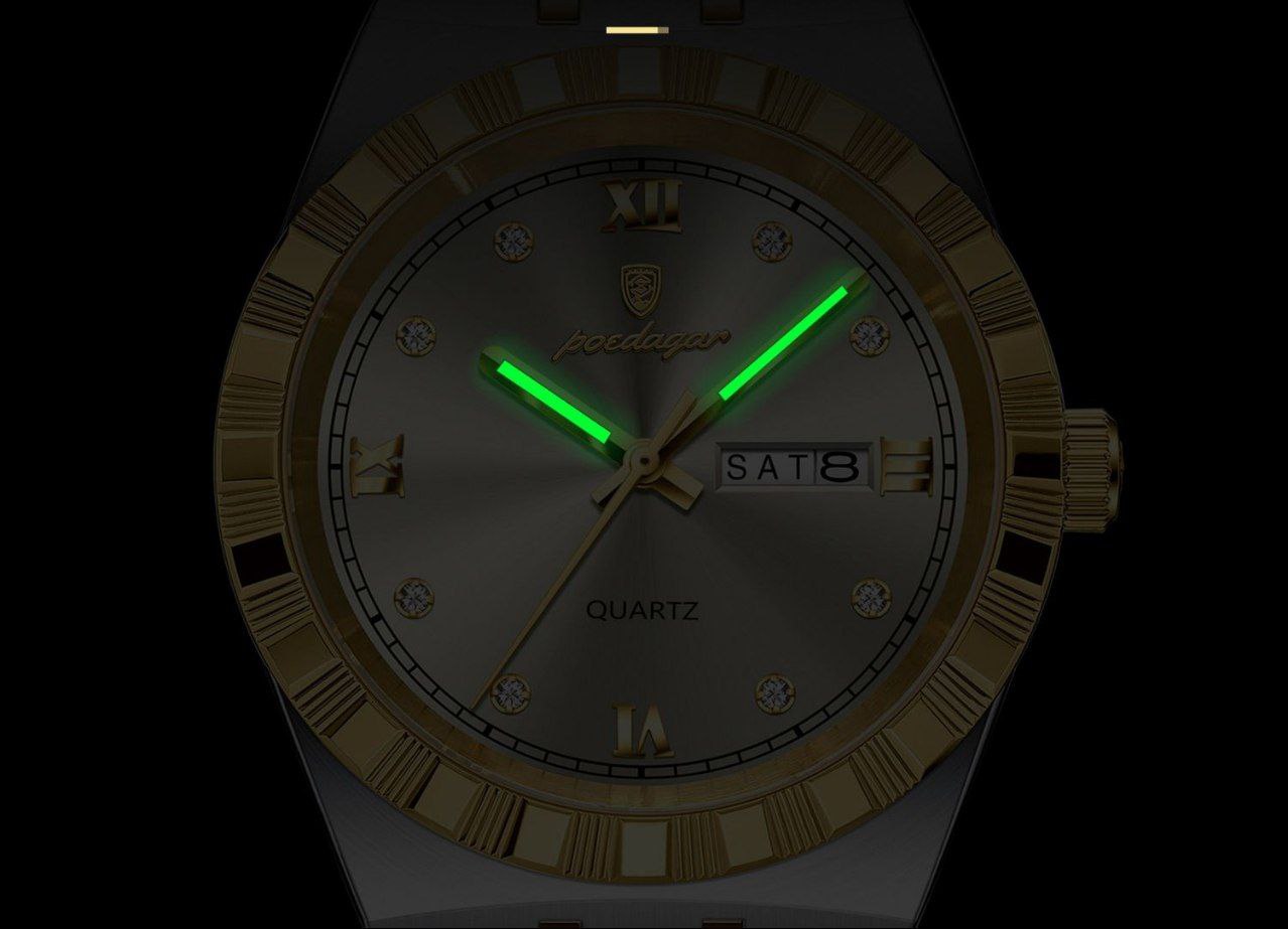 ساعت پوداگار مردانه poedagar صفحه شب نما بند استیل قطر صفحه ۴۲ میل ضدآب تا عمق بالا شیشه معدنی
