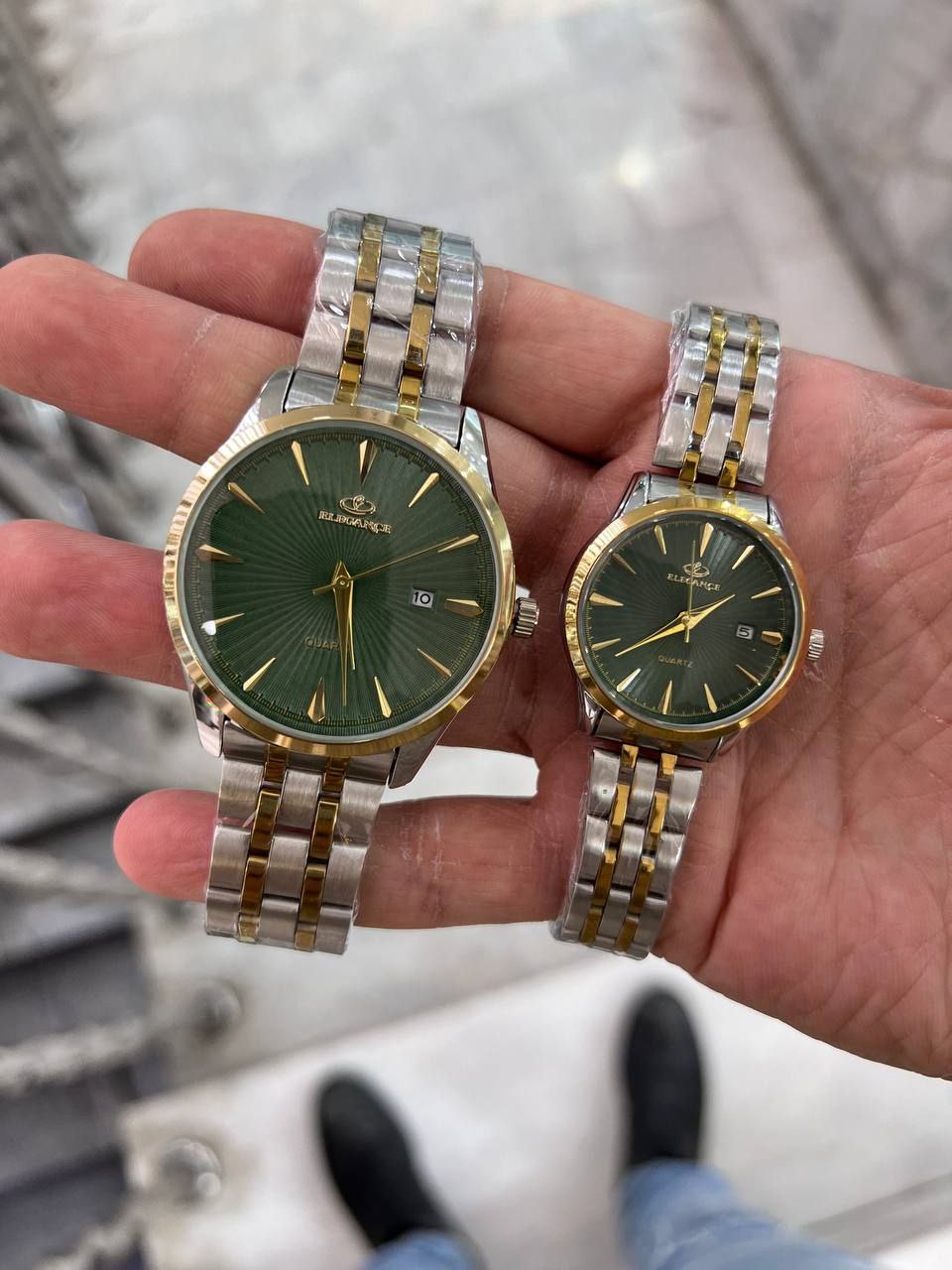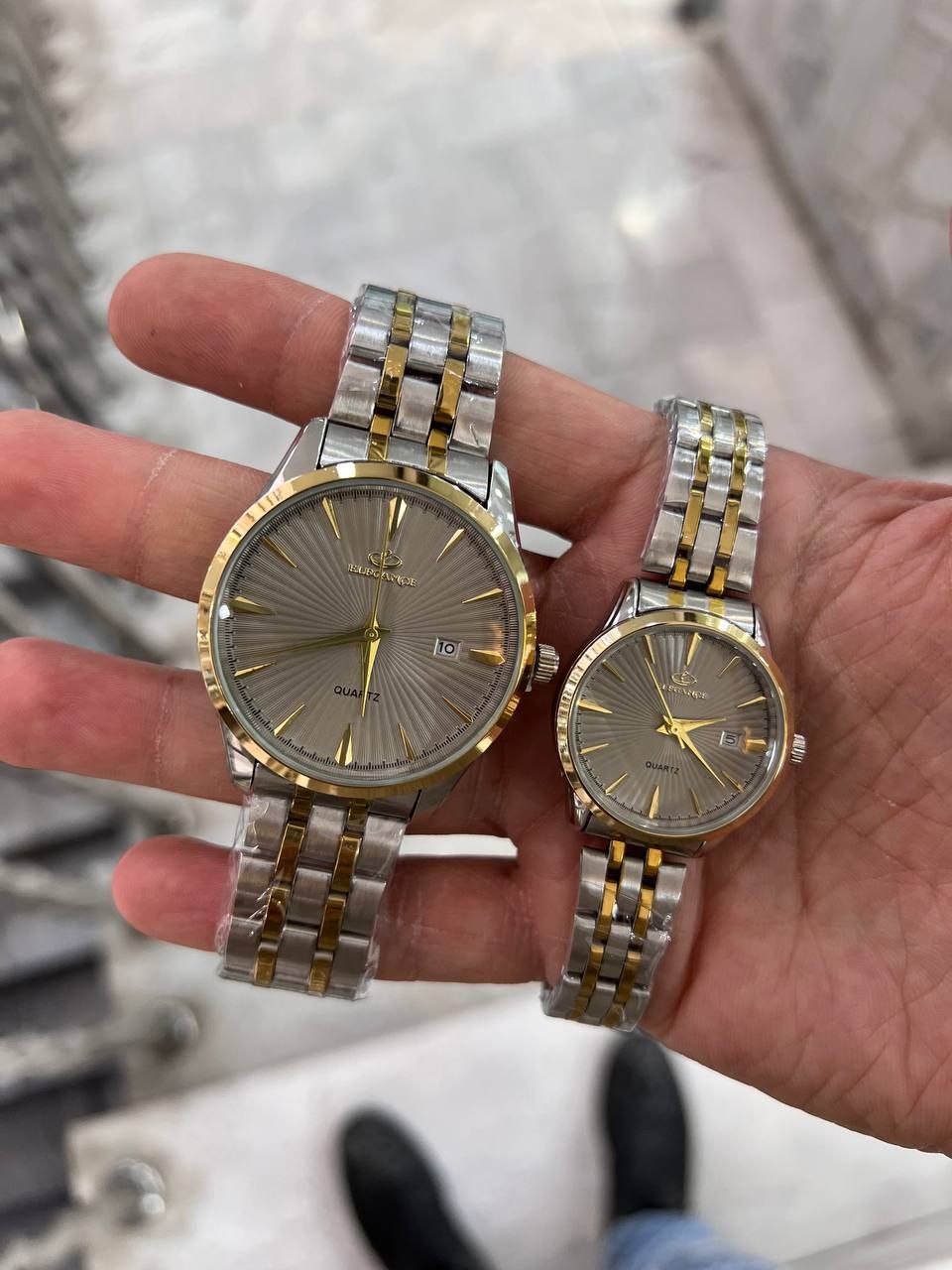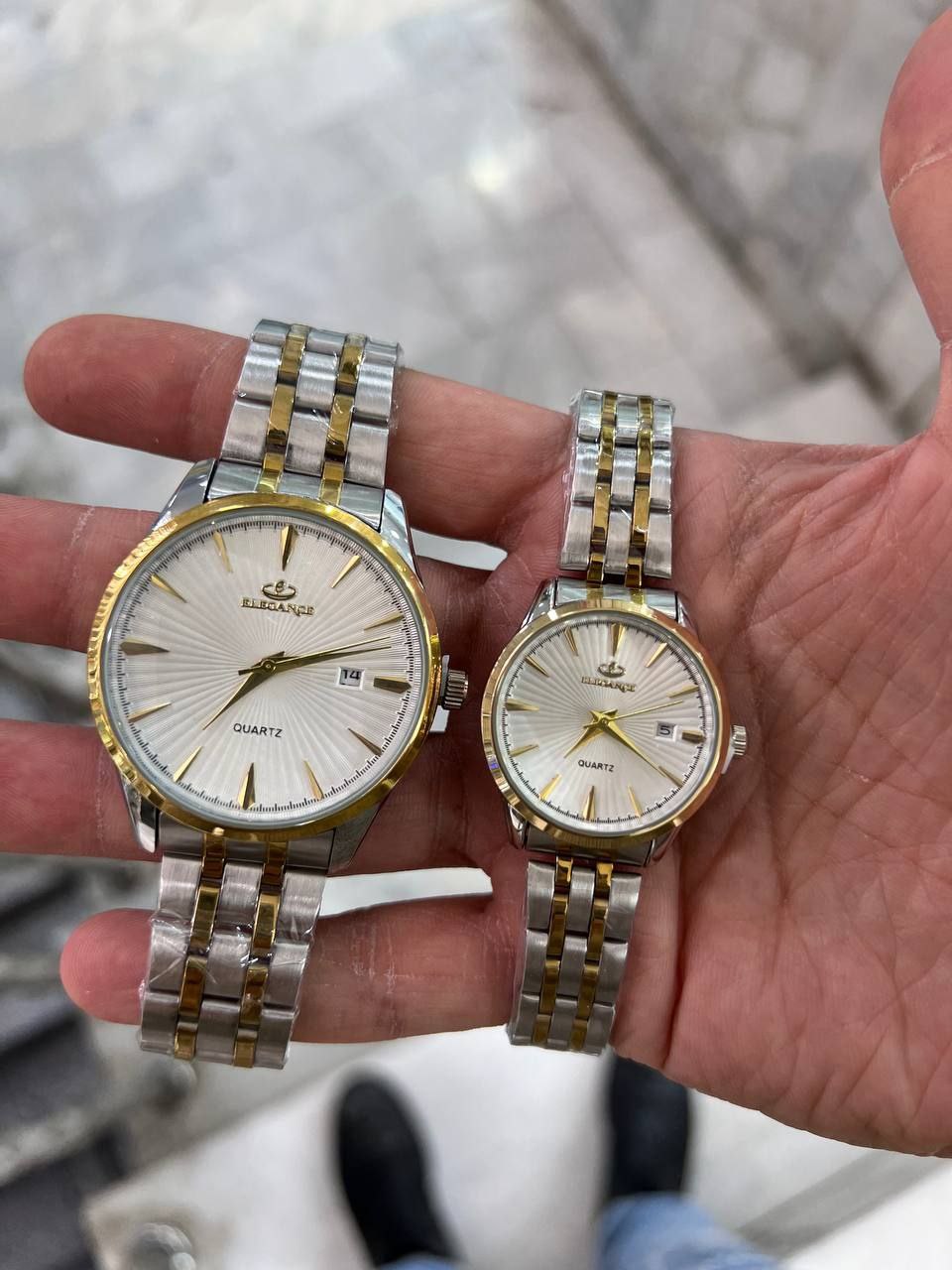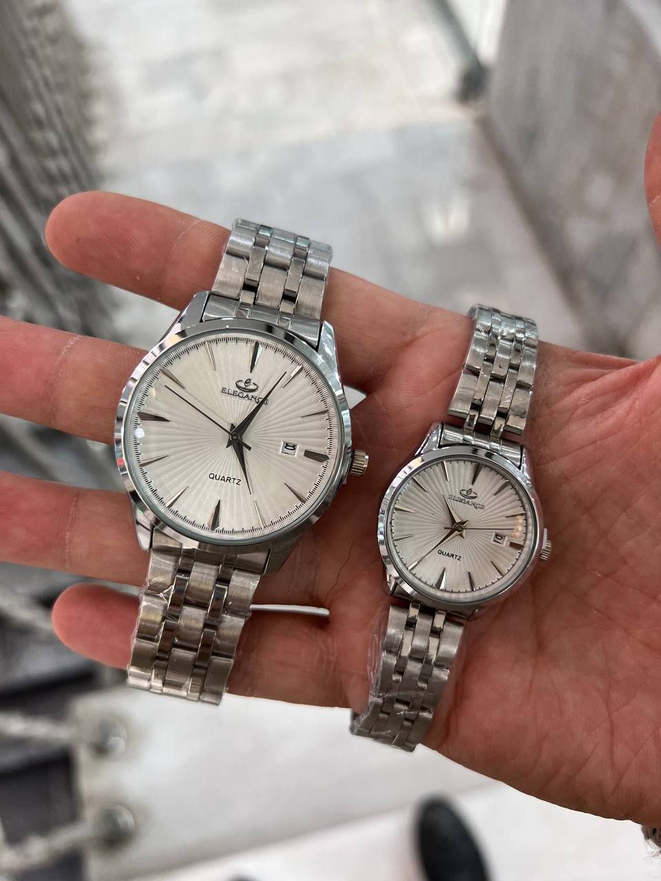 ست ساعت زنانه و مردانه الگانس بند استیل و دارای روزشمار