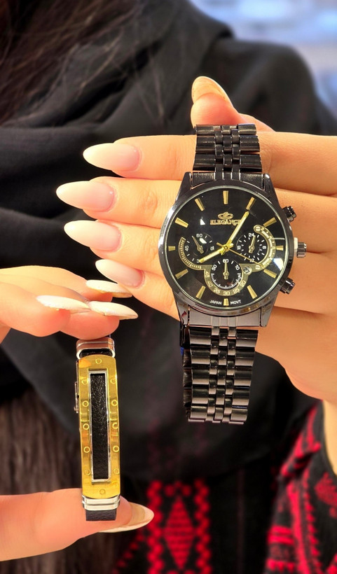 ست ساعت و دستبند جدید مردانه بند استیل و رنگ ثابت