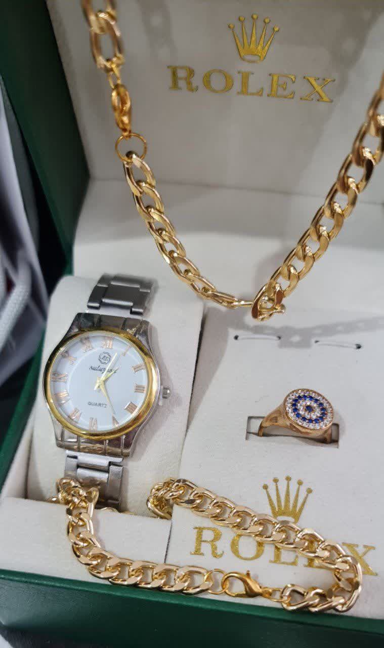 دارای: ساعت ودستبند وانگشتر وگردنبند