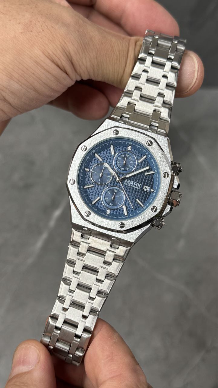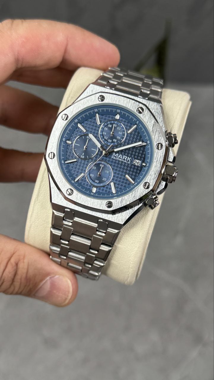 Mark fairwhale سه موتوره فعال برند مارک فرول اورجینال قطر 45 میلی متر رنگ ثابت ضدآب قاب استیل بند استیل قفل پروانه ای شیشه ضدخش روز شمار دارد ضدآب 3ATM باکس دارد She