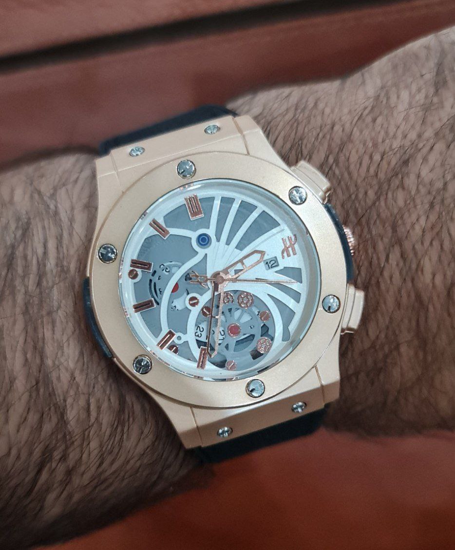ساعت هابلوت Hublot عنکبوتی قاب پشت حک شده طراحی ویژه صفحه