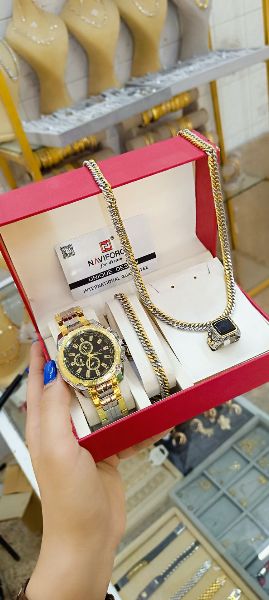 ست مردانه ساعت و دستبند وگردنبند وانگشتر
