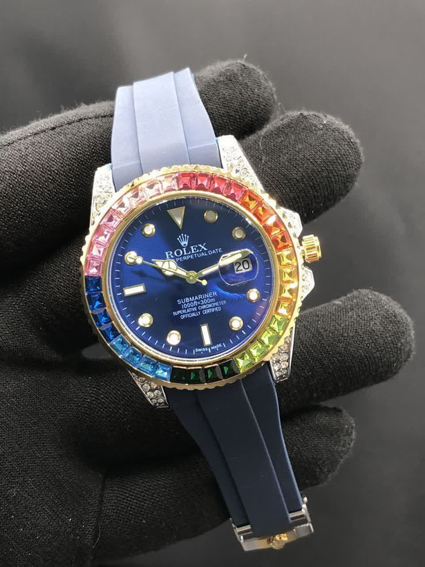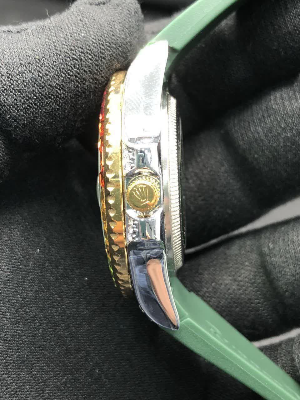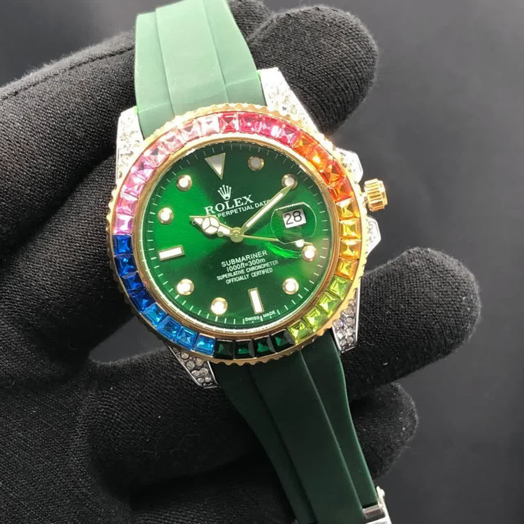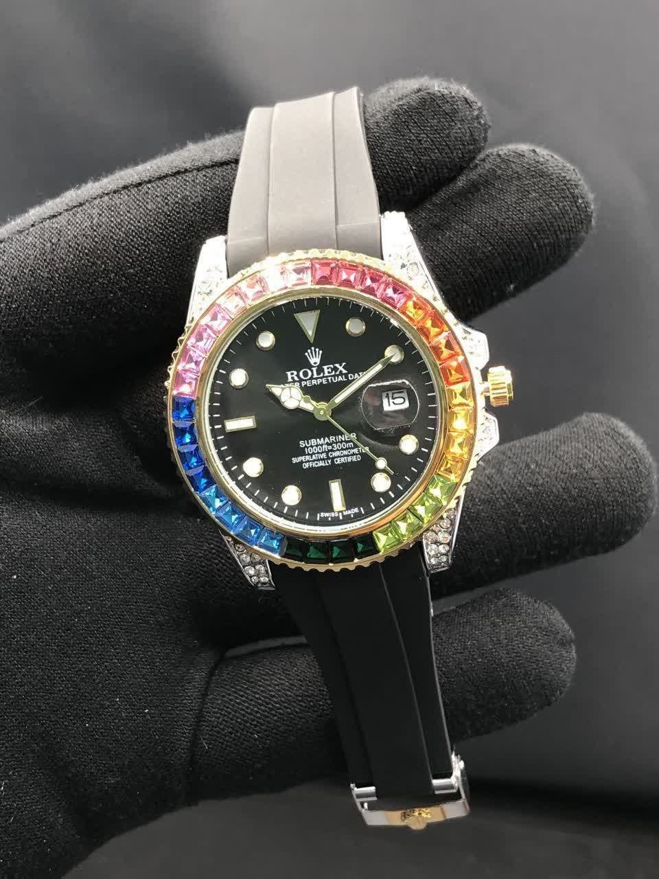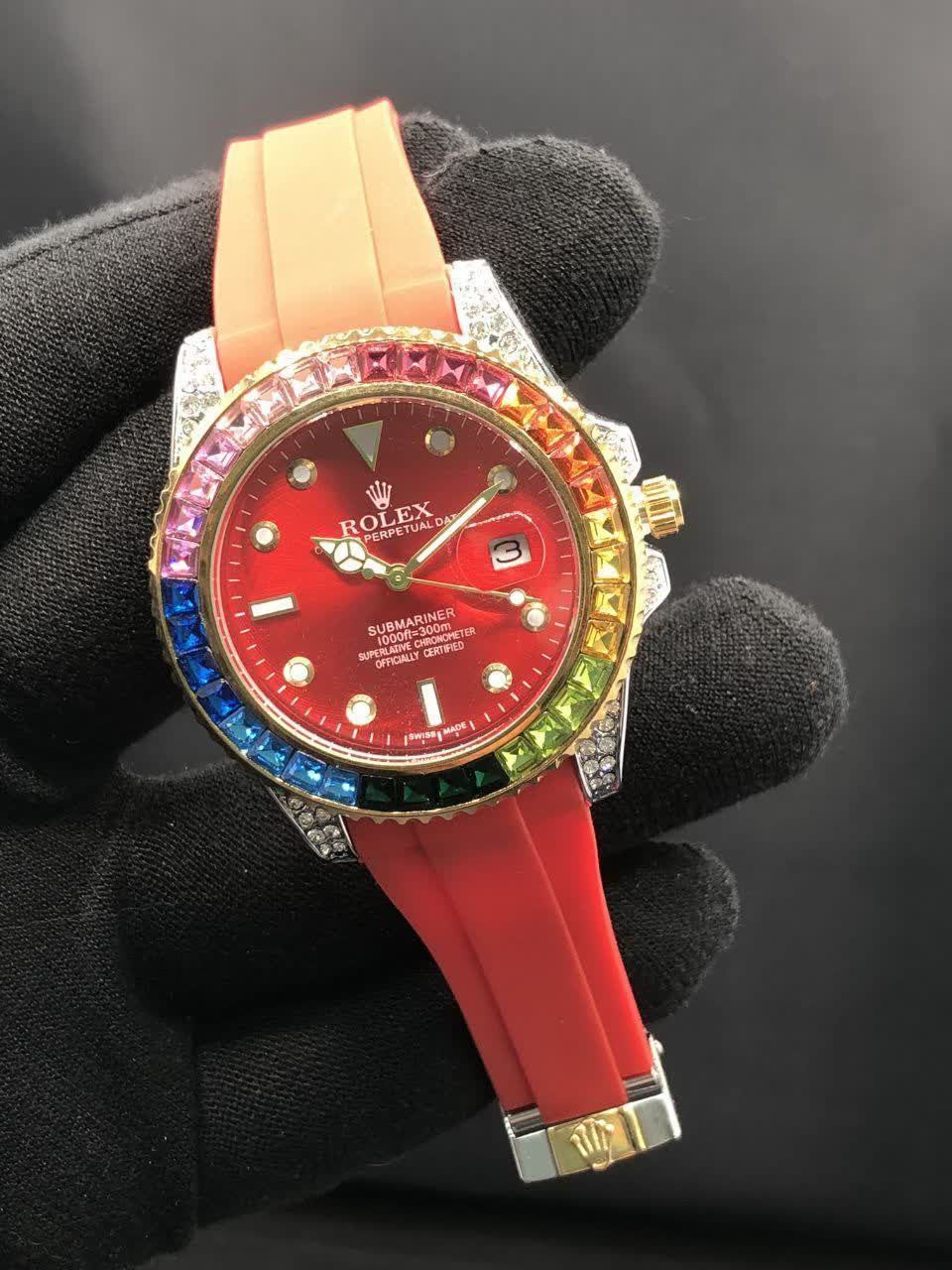 اطلاعات محصول :موتور ژاپن دورنگین باگتی دارای روزشمار بند Pu آنتی آلرژی ضدآب قفل استیل رولکسی شیشه کریستال