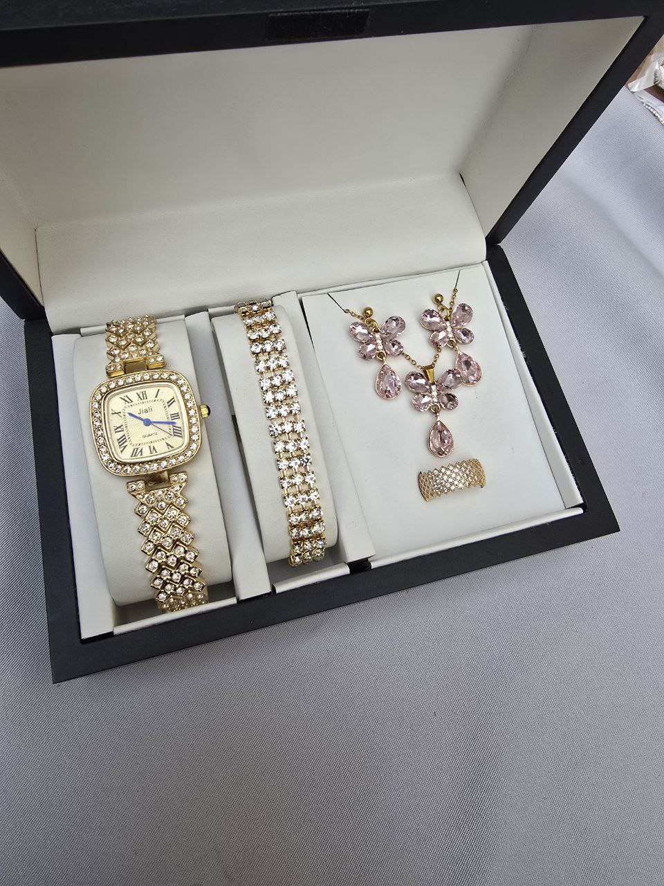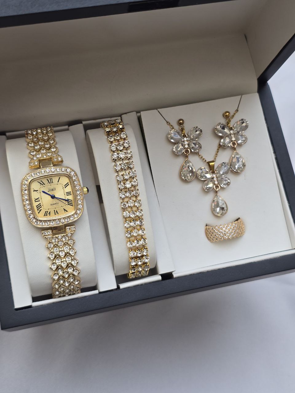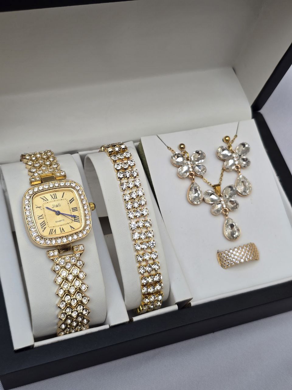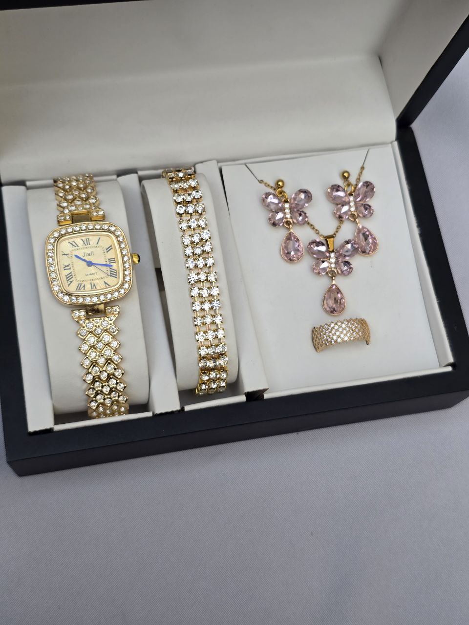 دارای: ساعت و دستبند وگردنبند و انگشتر