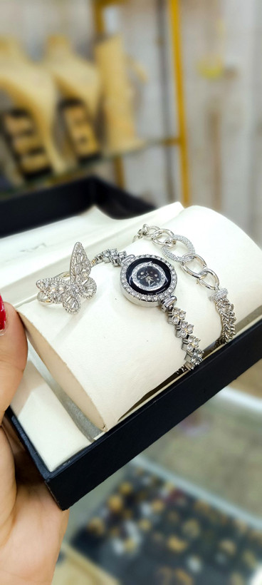 ⚛کالکشن جدید زنانه ⚛ساعت زنانه والار نگیندار ⚛همراه دستبند ⚛انگشتر تک نگین ⚛