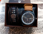 ساعت مچی مردانه همراه با دستبند ✅جعبه مخصوص ✅در 3مدل ✅سورمه ای/قهوهای عسلی/ قهوهای سوخته ✅موتور عالی ✅کیفیت عالی