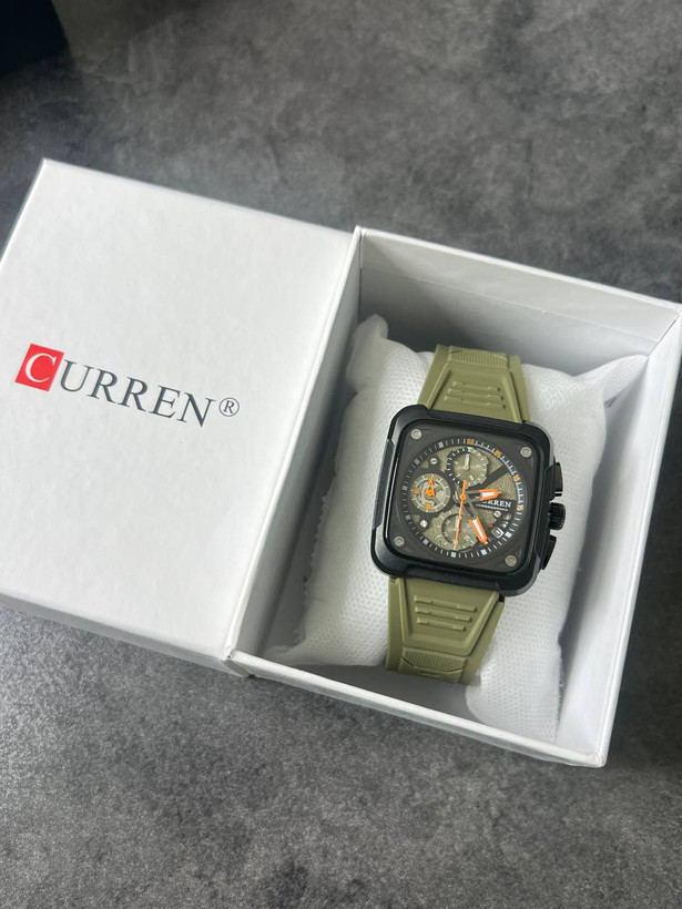 اطلاعات محصول :بر،ند: c u r r e n مدل: 8461 اورجینال شرکتی کورنوگراف(سه موتوره) دارای روز شمار دارای شب نما بند پیو در دو رنگ مشکی و سبز ضد اب 3atm طراحی شیک صفحه مربعی قطر صفحه ۴۲ میل
