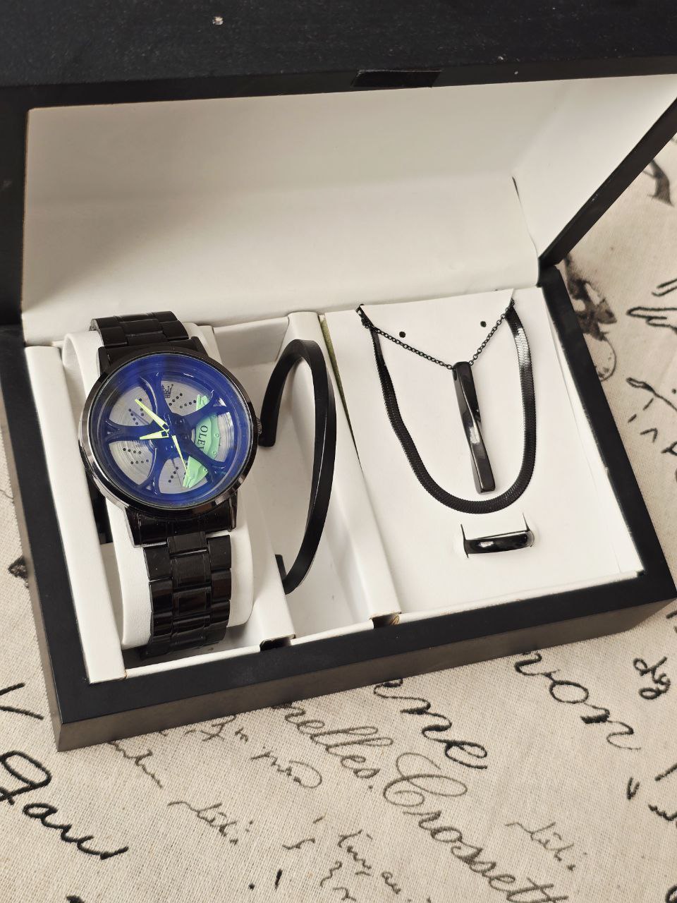 ست مردانه ساعت رینگی و بنگل و گردنبند و حلقه