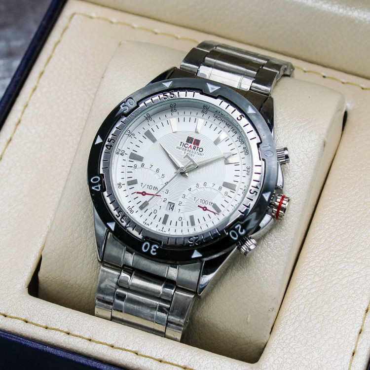 اطلاعات محصول :: ✅تقویمدار، طرح کرنو، رنگ بندی ✅بند استیل، قفل فشاری ✅جعبه کادویی و باطری رایگان