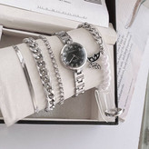 اطلاعات محصول :: ♦️ ساعت استیل زنانه مارک HONGRUI ♦️دستبند کارتیر تراش رنگ ثابت ♦️دستبند تلفیقی مراورید و زنجیر کارتیر با آویز پروانه ♦️دستبند تنیسی فول نگین ♦️دستبند ماری فول استیل طرح طلا ♦️انگشتر استیل رنگ ثابت ♦️با جعبه شیک ساعت