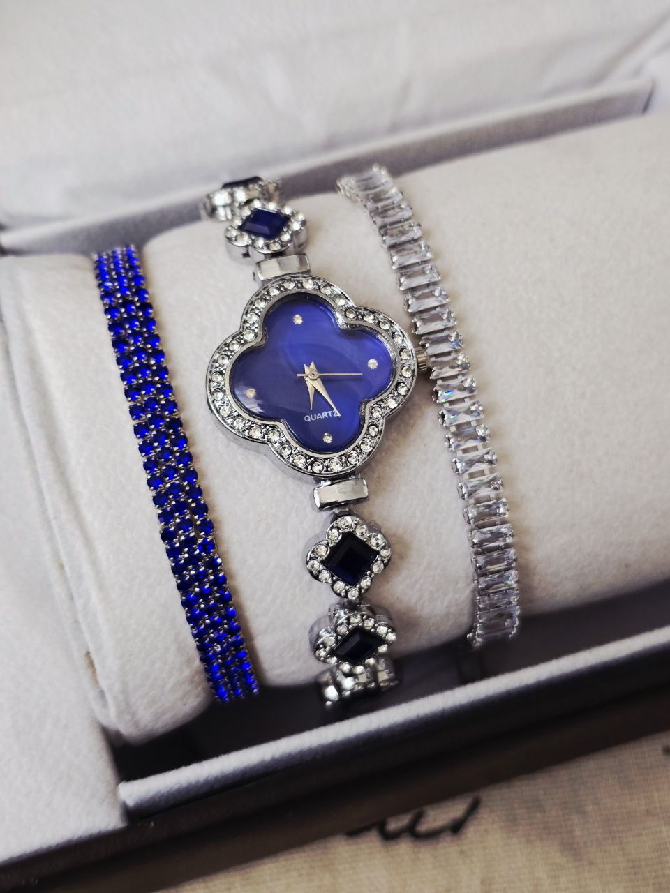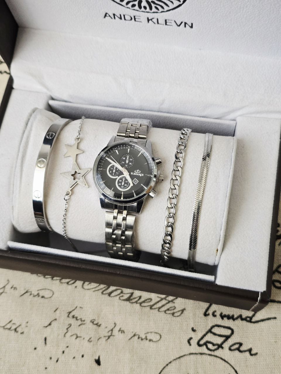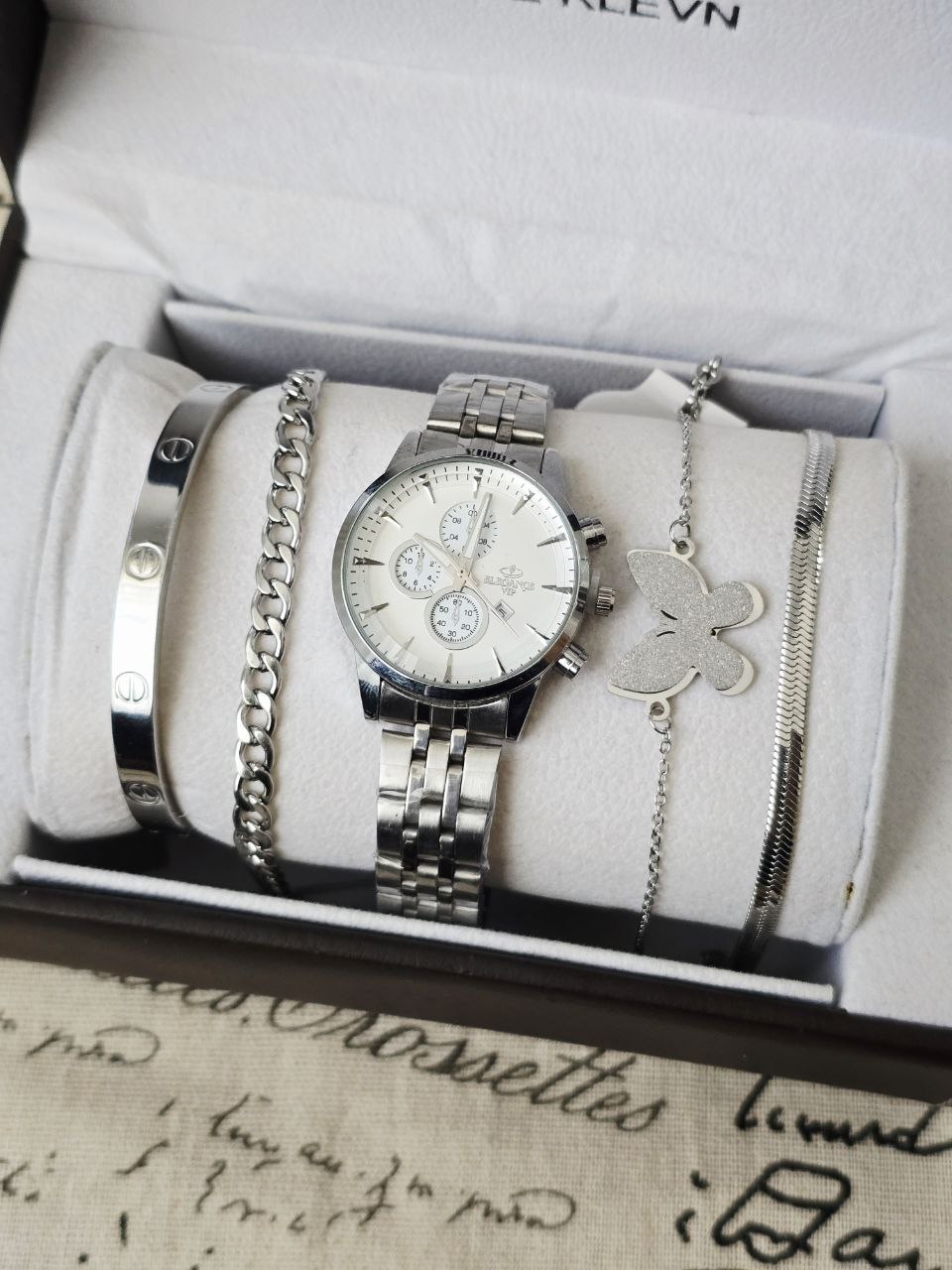 ست زنانه و دخترانه ساعت و زیورآلات بهمراه جعبه کادویی و باتری یدکی