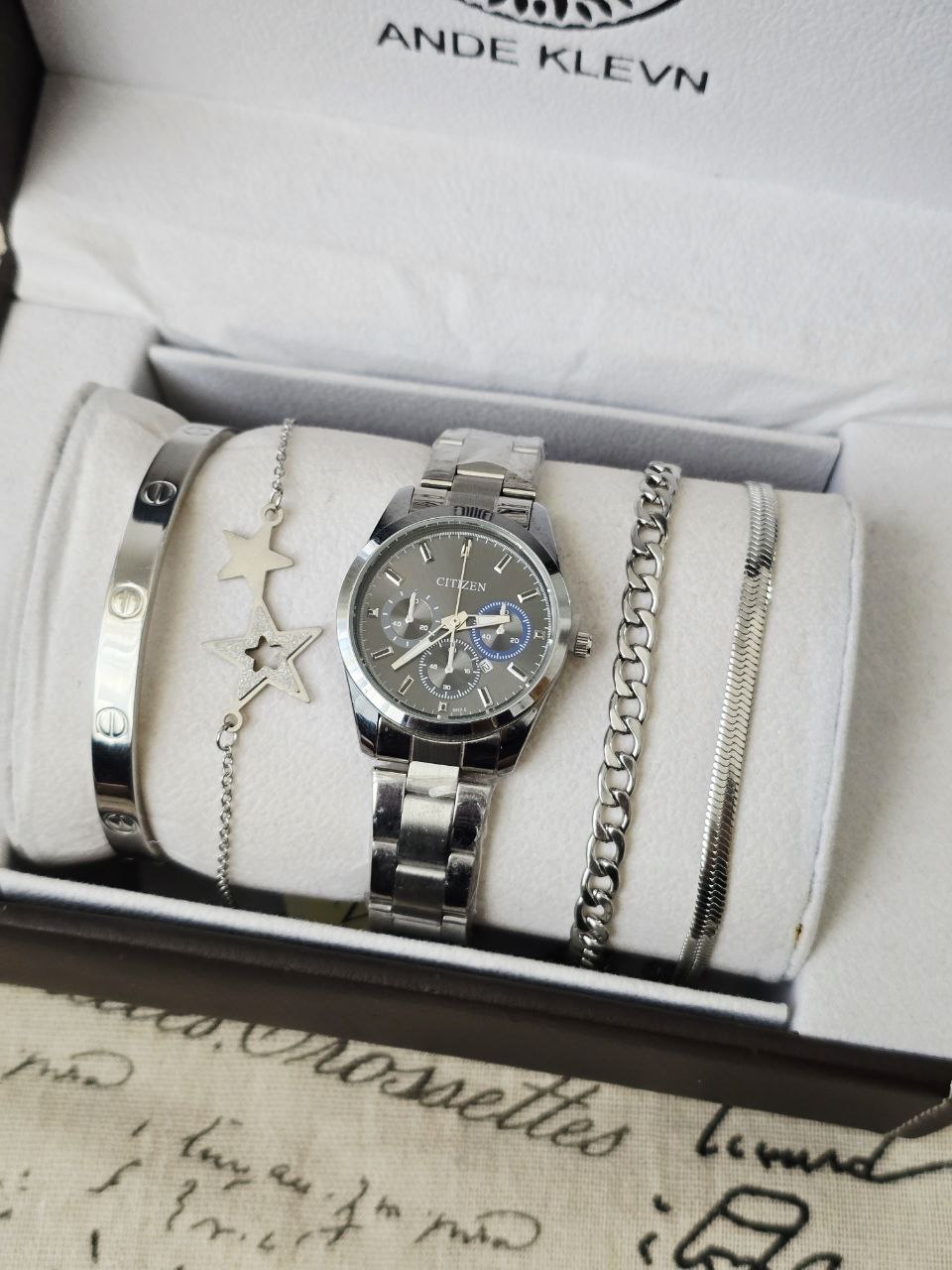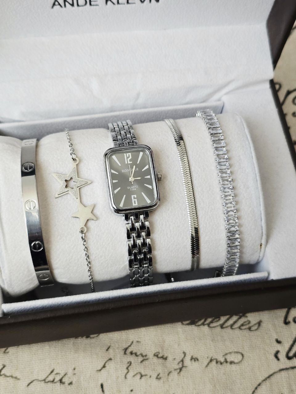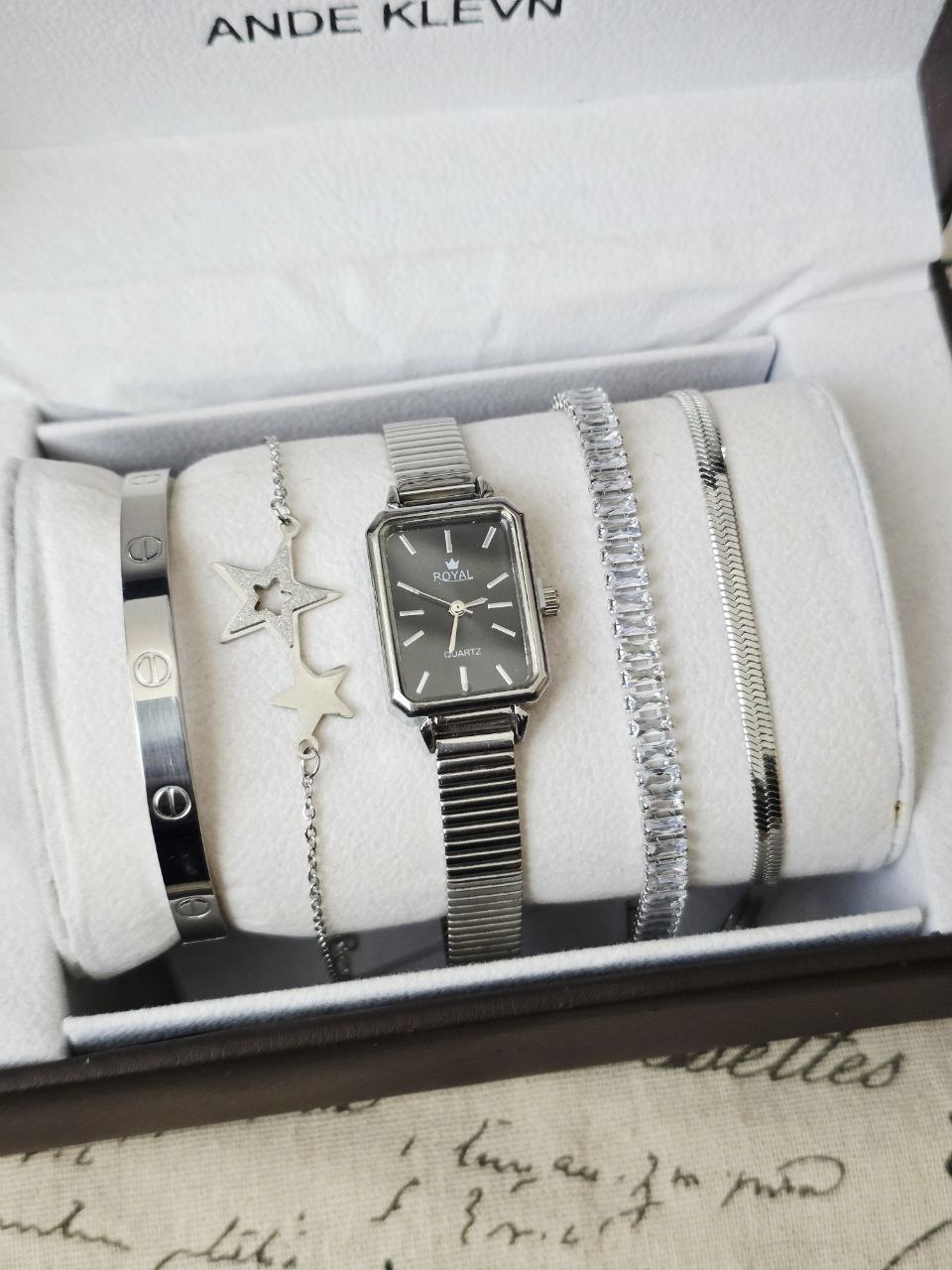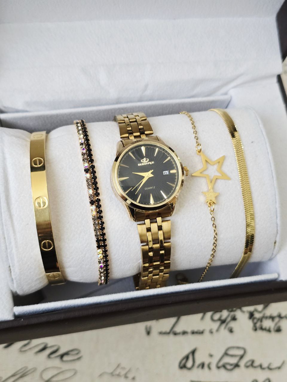 ست زنانه و دخترانه ساعت و زیورآلات بهمراه جعبه کادویی و باتری یدکی