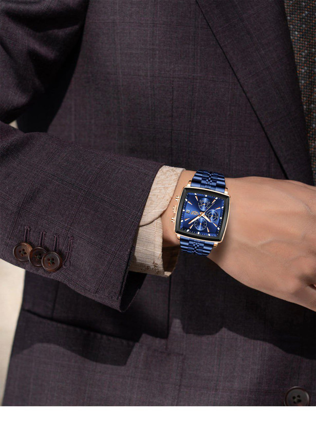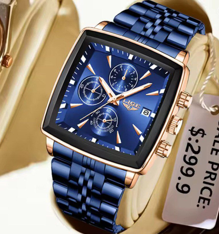 مشخصات: پرفروش ترین مدل مردانه مربعی lige مدل 2025 سه موتوره فعال اورجینال قطر 44 میلی متر رنگ ثابت قاب استیل بند استیل قفل پروانه ای شیشه ضدخش روز شمار دارد ضدآب 3ATM با جعبه مارکدار