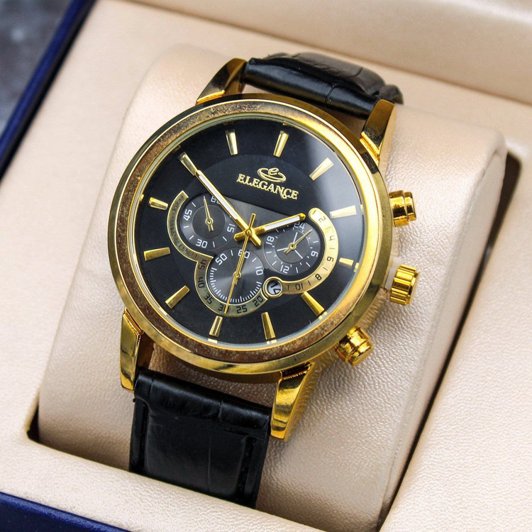 مشخصات: ⌚ساعت مچی مردانه ELEGANCE ✅تقویم دار، طرح کرنو ✅بند چرمی، قفل کمربندی ✅جعبه و باطری رایگان