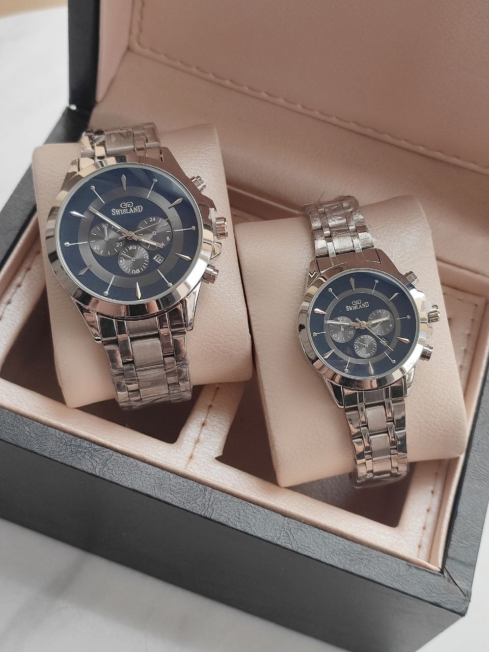 مشخصات: ست ساعت مارک سویسلند swisland 5005507309 قفل ضامن دار دارای روز شمار موتور با کیفیت طرح سه موتوره قاب و بند استیل کیفیت بسیار خوب همراه با جعبه شیک