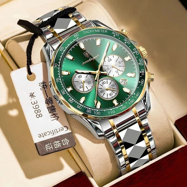 ساعت مچی مردانه برند پوداگار پیشنهاد ویژه ساعتکده تعداد محدود POEDAGAR اورجینال Model: Gentleman برای آقایان موتور شرکتی A++ ۳ موتور فعال کرنوگراف دارای روزشمار بند استیل طرح الماسی قفل استیل کلیپسی شیشه کریستال ضدخش ضدآب 3Atm ❌۳۰ درصد