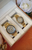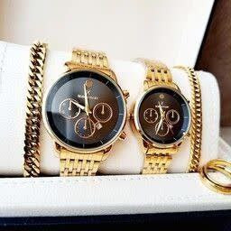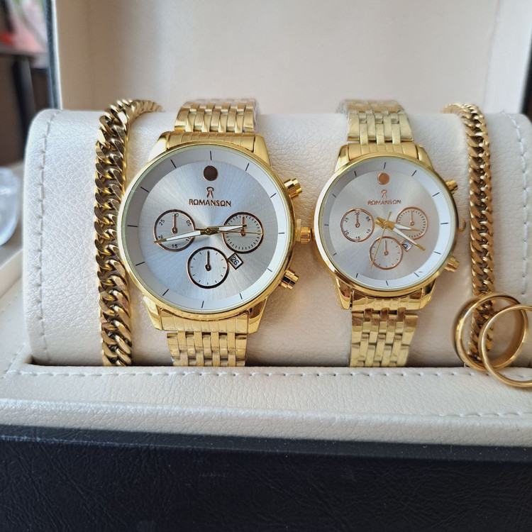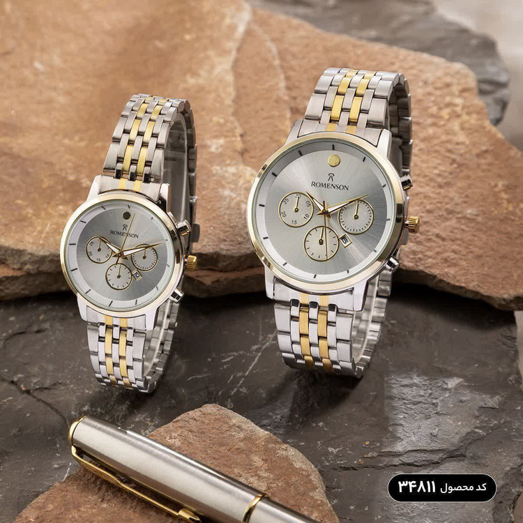 ست ساعت زنانه و مردانه ROMANSON set #فلزی #ست برای آقایان و خانمها موتور کوارتز شرکتی قفل کلیپسی بنداستیل رنگ ثابت قاب استیل طرح سه موتور دارای روز شمار بند اجری به همراه جعبه هدیه و باتری یدک