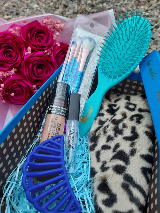 اقلام باکس: شامل حد پلنگی برس کلیپس کرم پودر گابرینی براش سه عددی تقویت مژه