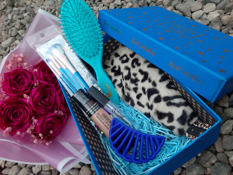 اقلام باکسشامل حد پلنگی برس کلیپس کرم پودر گابرینی براش سه عددی تقویت مژه