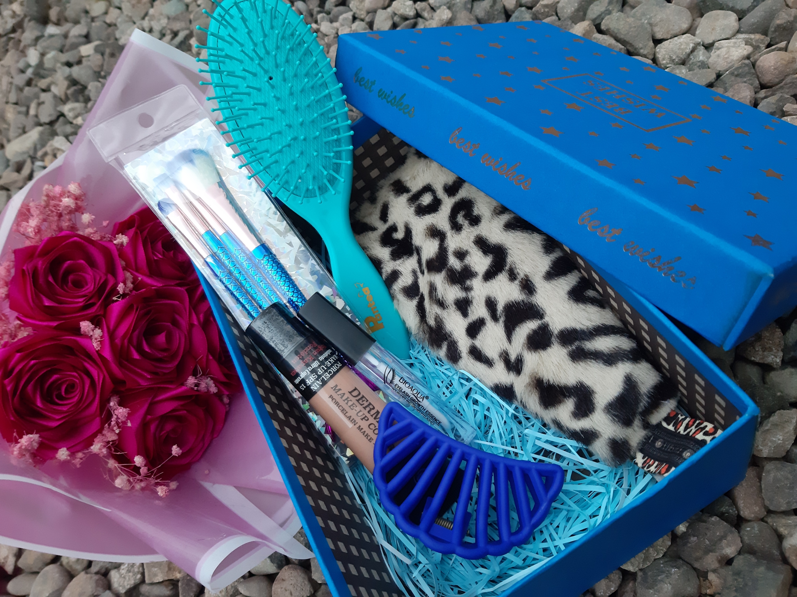 اقلام باکس: شامل حد پلنگی برس کلیپس کرم پودر گابرینی براش سه عددی تقویت مژه