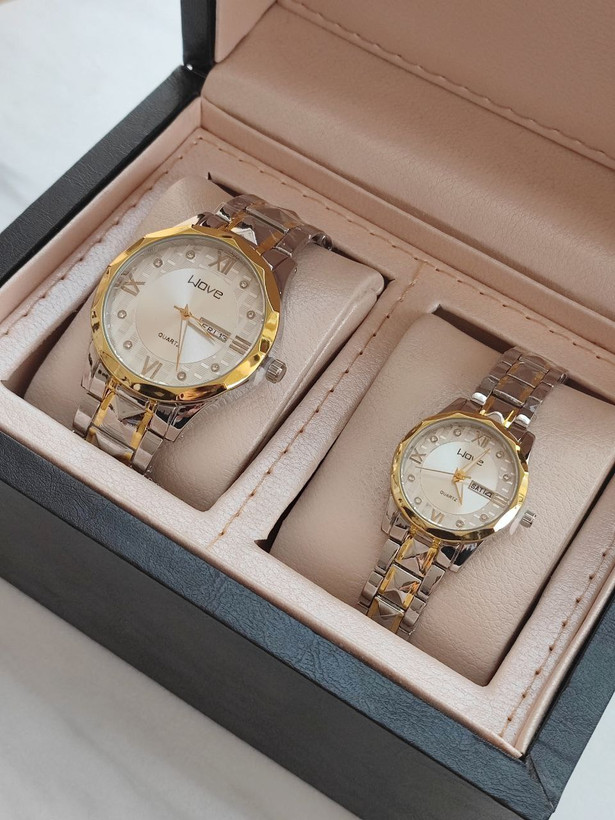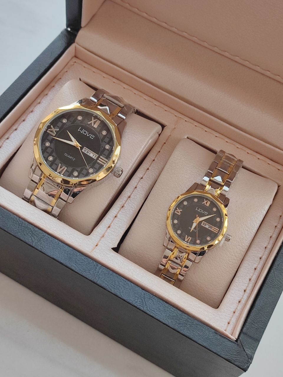 ست ساعت زنانه و مردانه فلزی مارک wove 5506007089 دو تقویمه قفل ضامن دار موتور با کیفیت قاب و بند استیل کیفیت بسیار خوب همراه با جعبه شیک