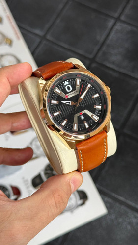 ساعت مچی مردانه برند کارن brand curren اورجینال قطر 42 میلی متر رنگ ثابت قاب استیل بند چرمی شیشه ضدخش روز شمار دارد ضدآب 3ATM
