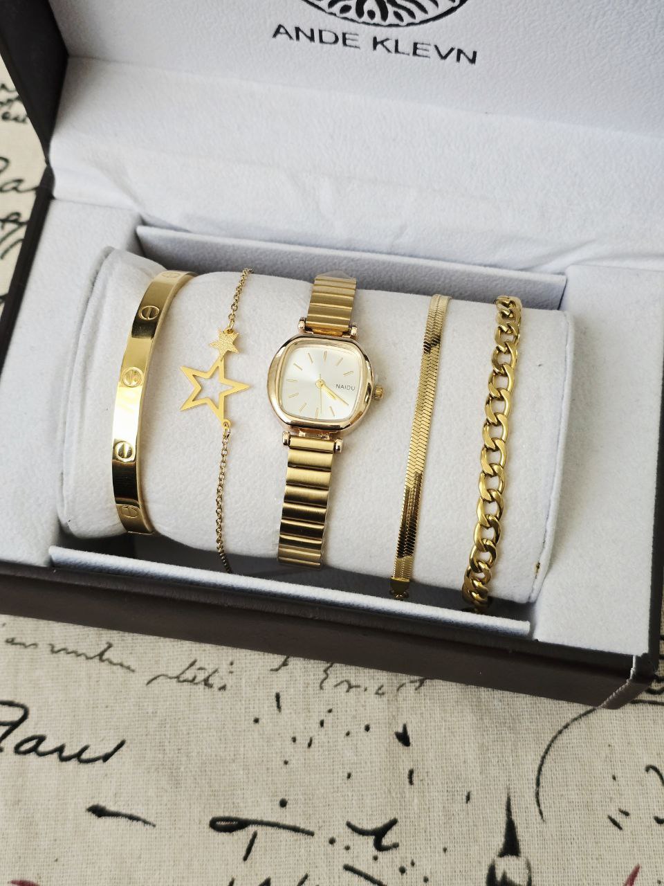 ست زنانه و دخترانه ساعت و دستبند و نیمست استیل و حلقه