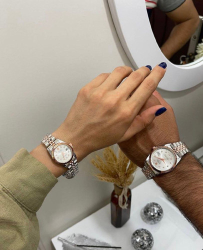 ست ساعت زنانه و مردانه برند رولکس دیت جاست شیشه تلسکوپی