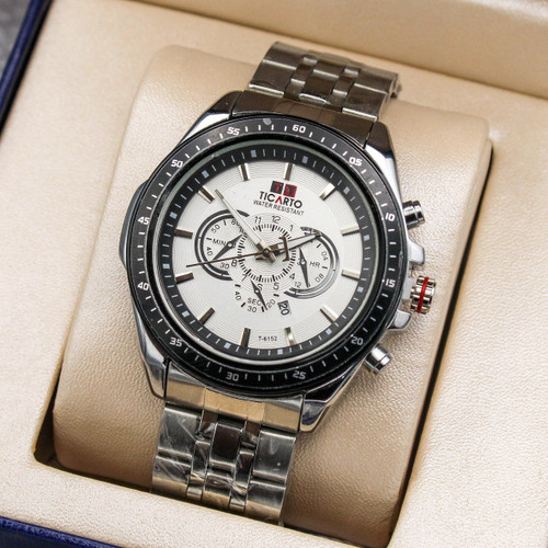 ساعت مچی مردانه TICARTO ✅تقویمدار، طرح کرنو، رنگ بندی ✅بند استیل، قفل فشاری ✅جعبه کادویی و باطری رایگان