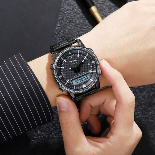 ساعت مچی دیجیتال مردانه Skmei 👌🏻کیفیت عالی، بند استیل، ضدآب، رنگ ثابت 👌🏻دو زمانه، کرنومتر، نور زمینه، آلارم کد محصول: 655 رنگبندی: مشکی، رزگلد، نقره ای، رزگلد